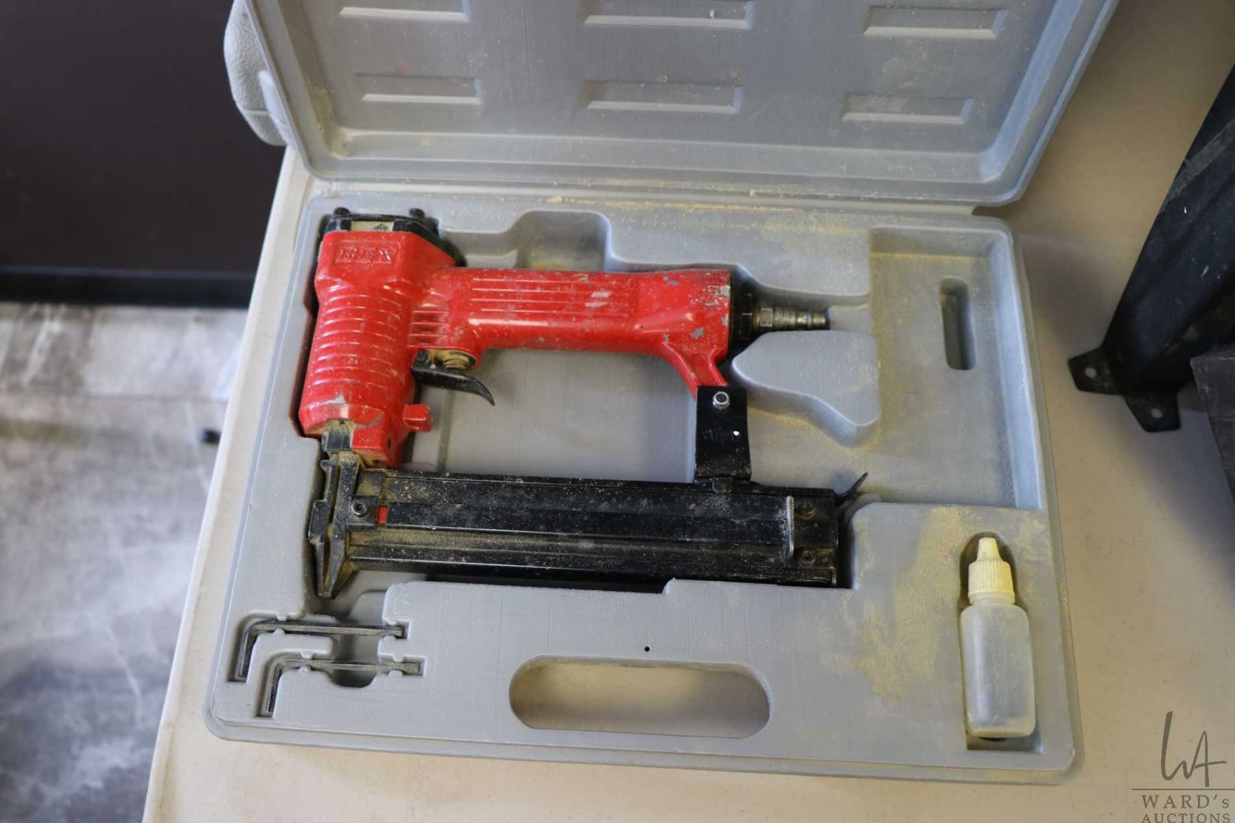 Mastercraft air powered spray gun, appears new in box, a Bex air nailer in case and a Porter Cable nailer in case
