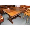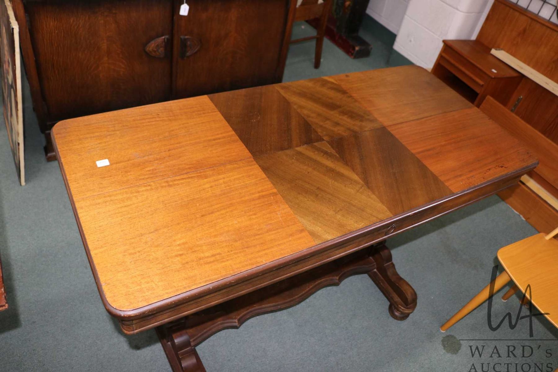 Matched grain Art Deco dinette table jack knife leaf, 30" H X 48" X 22" closed plus 14" leaf