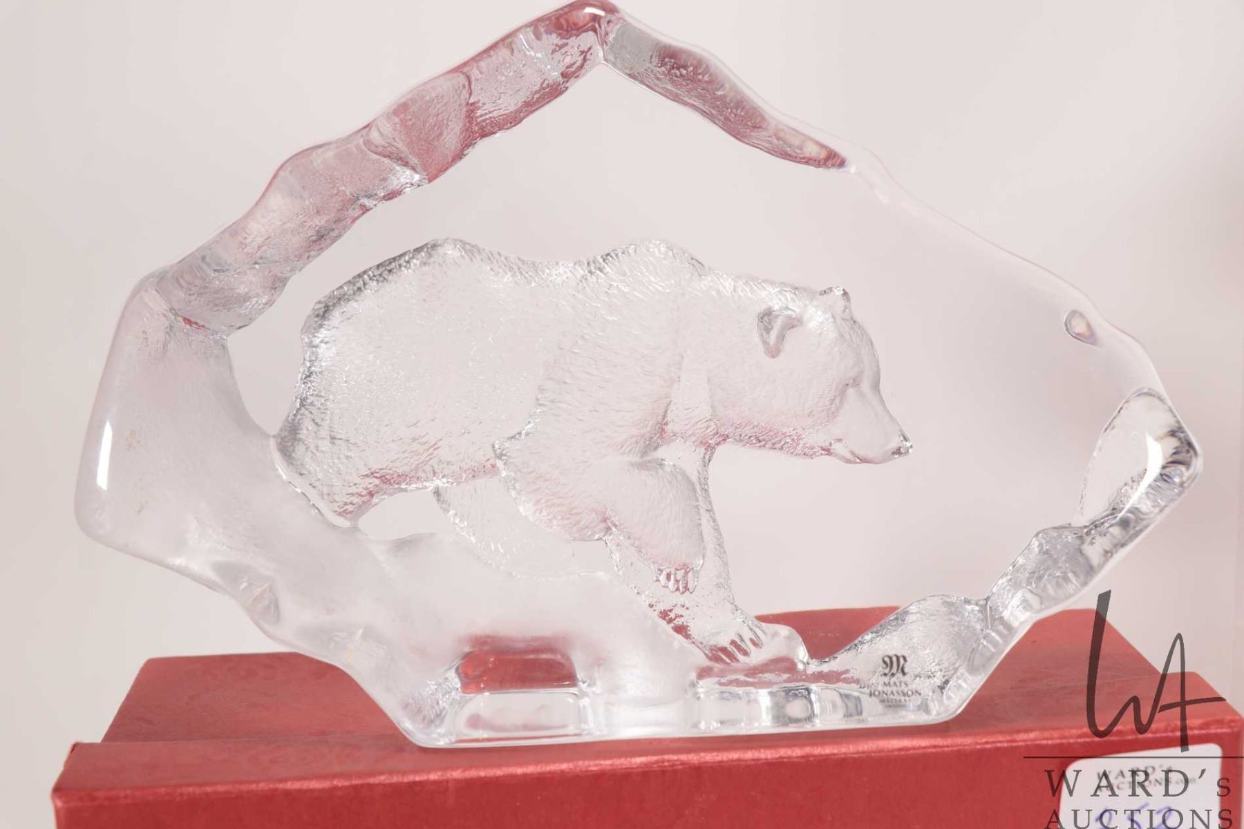 Mats Jonasson Swedish made crystal grizzly bear sculpture, 4 1/2" high X 7" in length