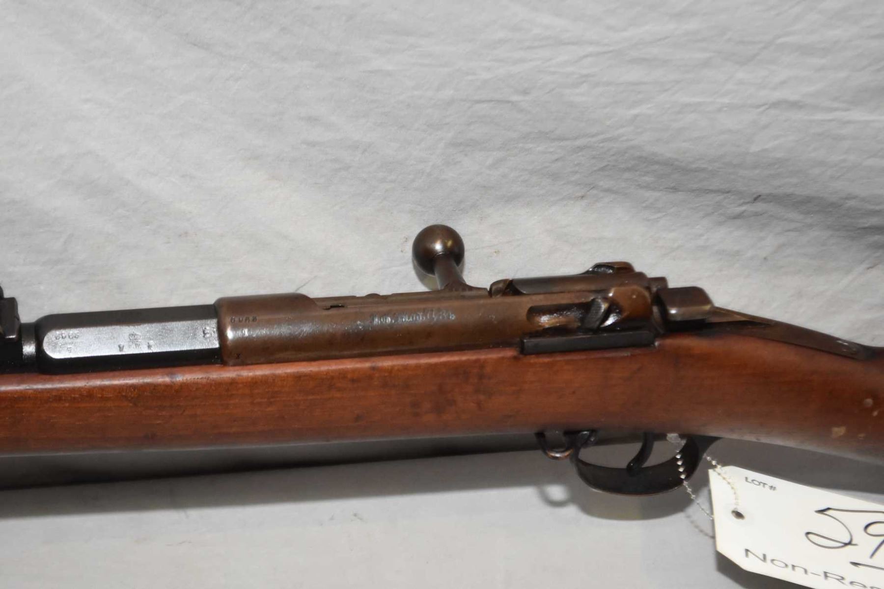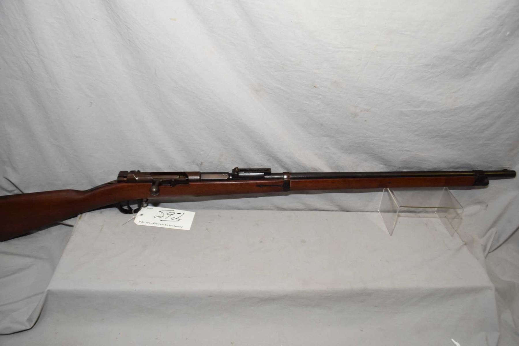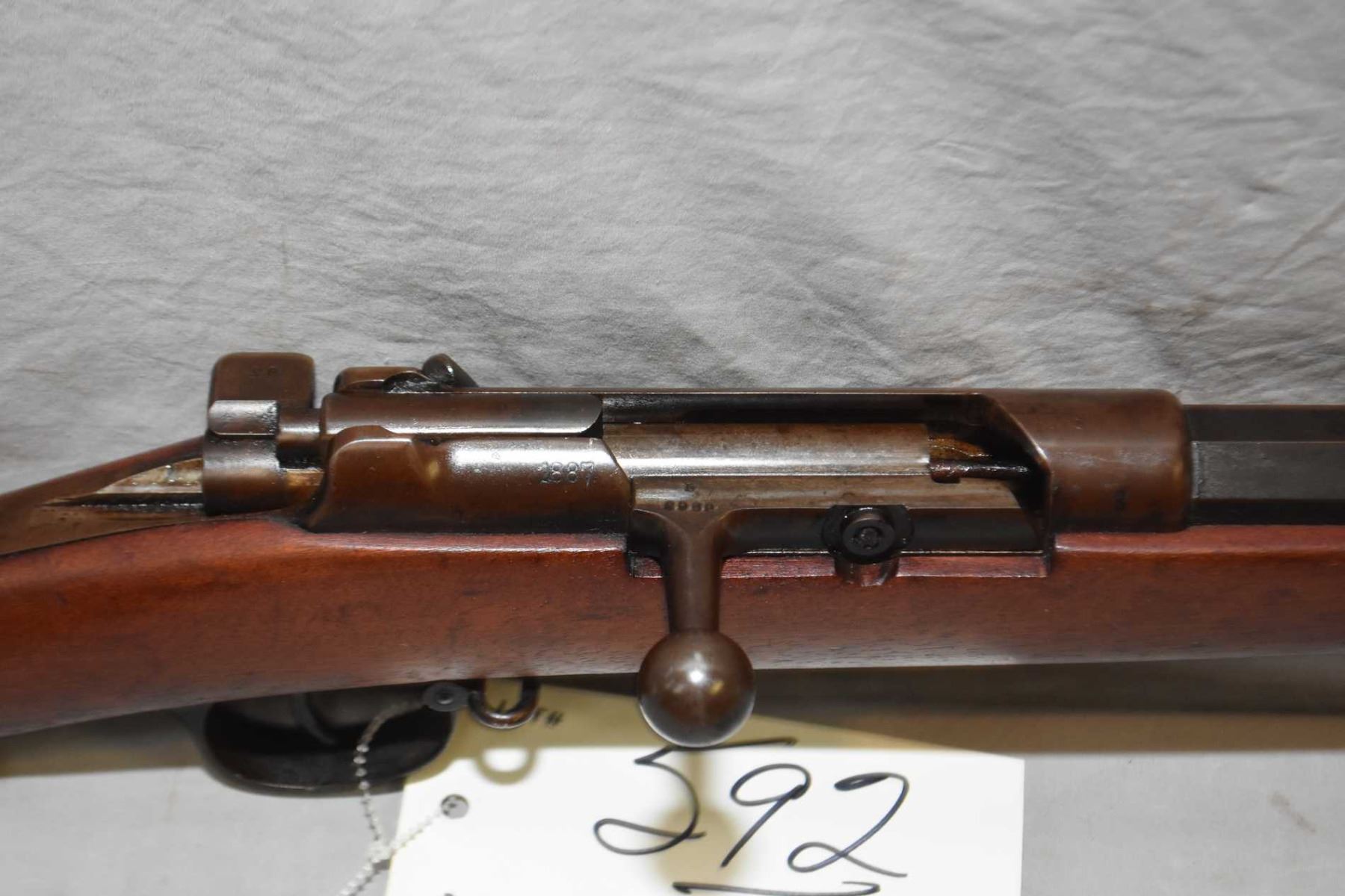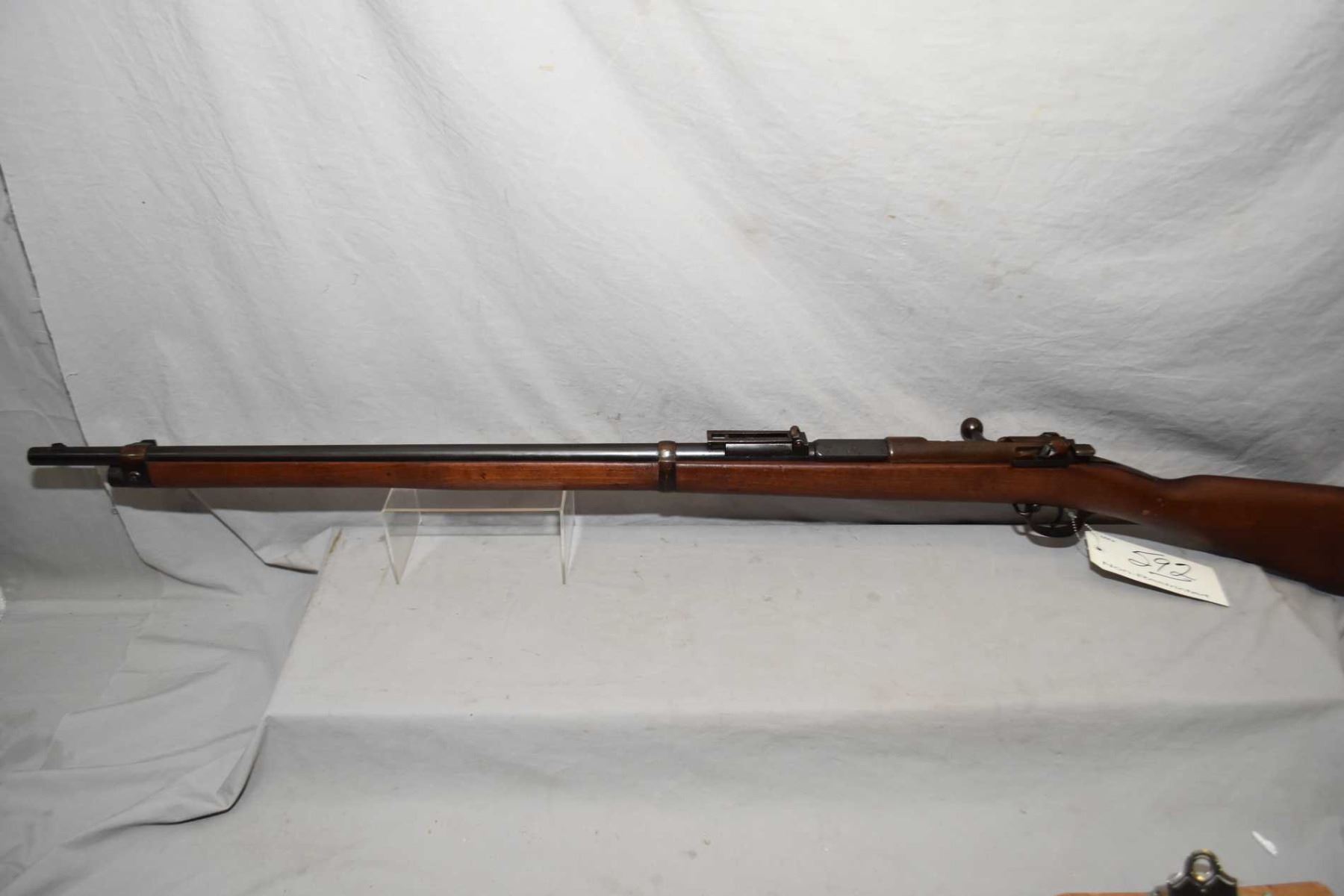 Mauser ( Danzig ) Model 1871/ 84 .43 Mauser Cal Tube Fed Bolt Action Full Wood Military Rifle w/ 30 1/2" bb l [ fading blue finish turning brown, Dated 1887, barrel sights, matching numbered bolt, mag tube cap has hanger ground off, fair wood, with various marks and scratches, butt plate has stampings, missing the bolt retaining ring ] Ser # 6963