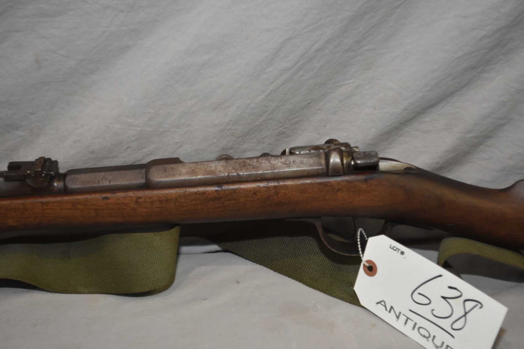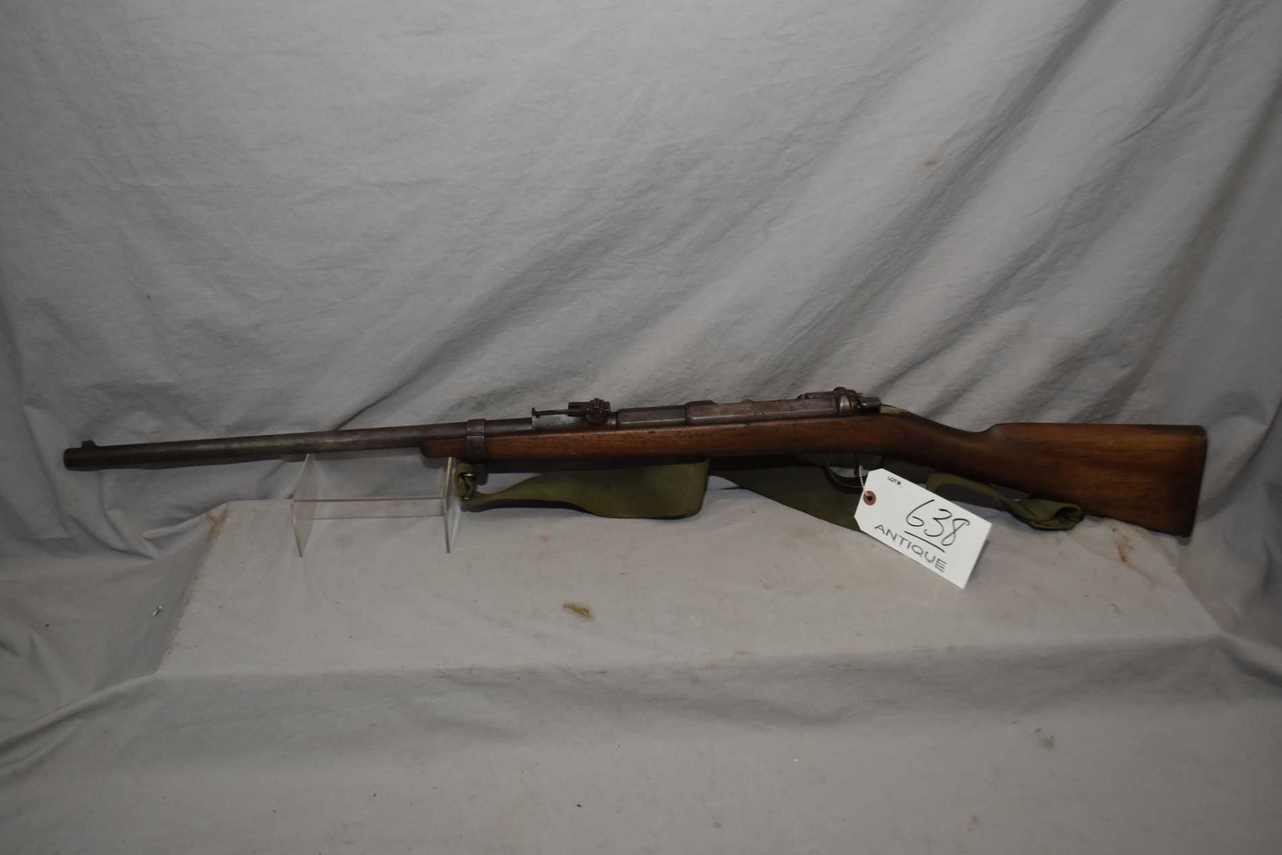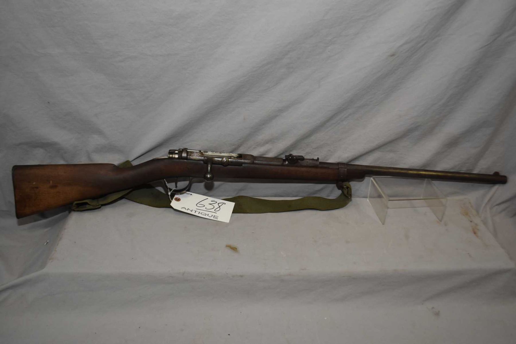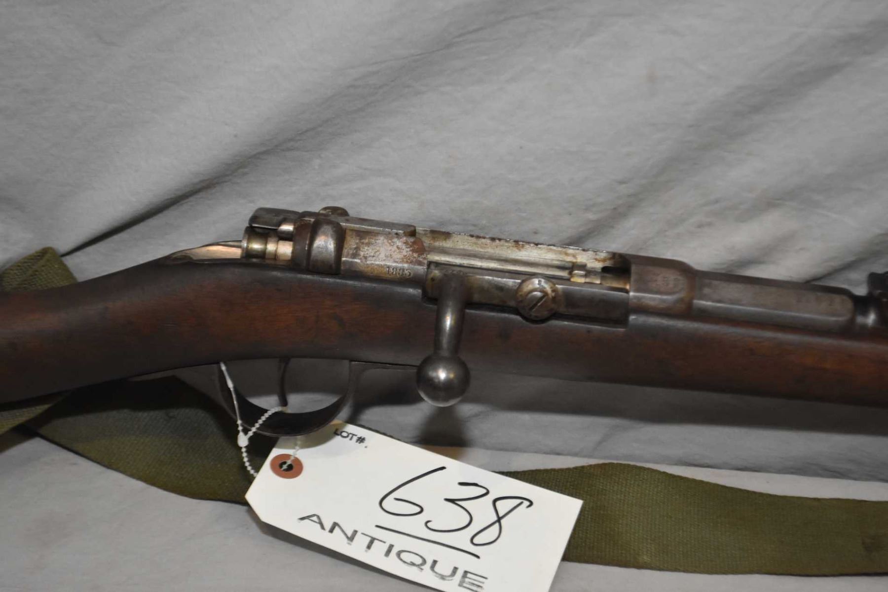 Mauser ( Spandau ) Model 1871 Dated 1885 .43 Mauser Cal / .11 MM Antique Mauser Cal Single Shot Bolt Action Sporterized Rifle w/ 24" bbl [ fading blue finish turning brown in some areas, barrel sights, good sporterized wood, w/ green web sling, various marks and scratches to wood and metal, matching numbered bolt ] Ser # 6477 ANTIQUE NO PAL REQ