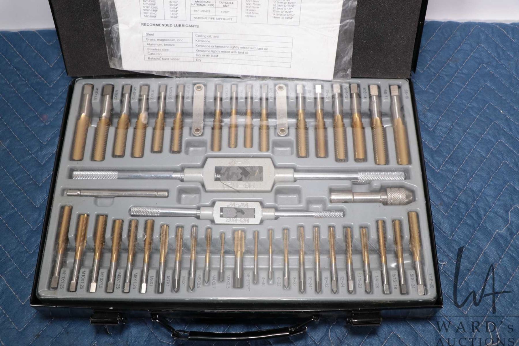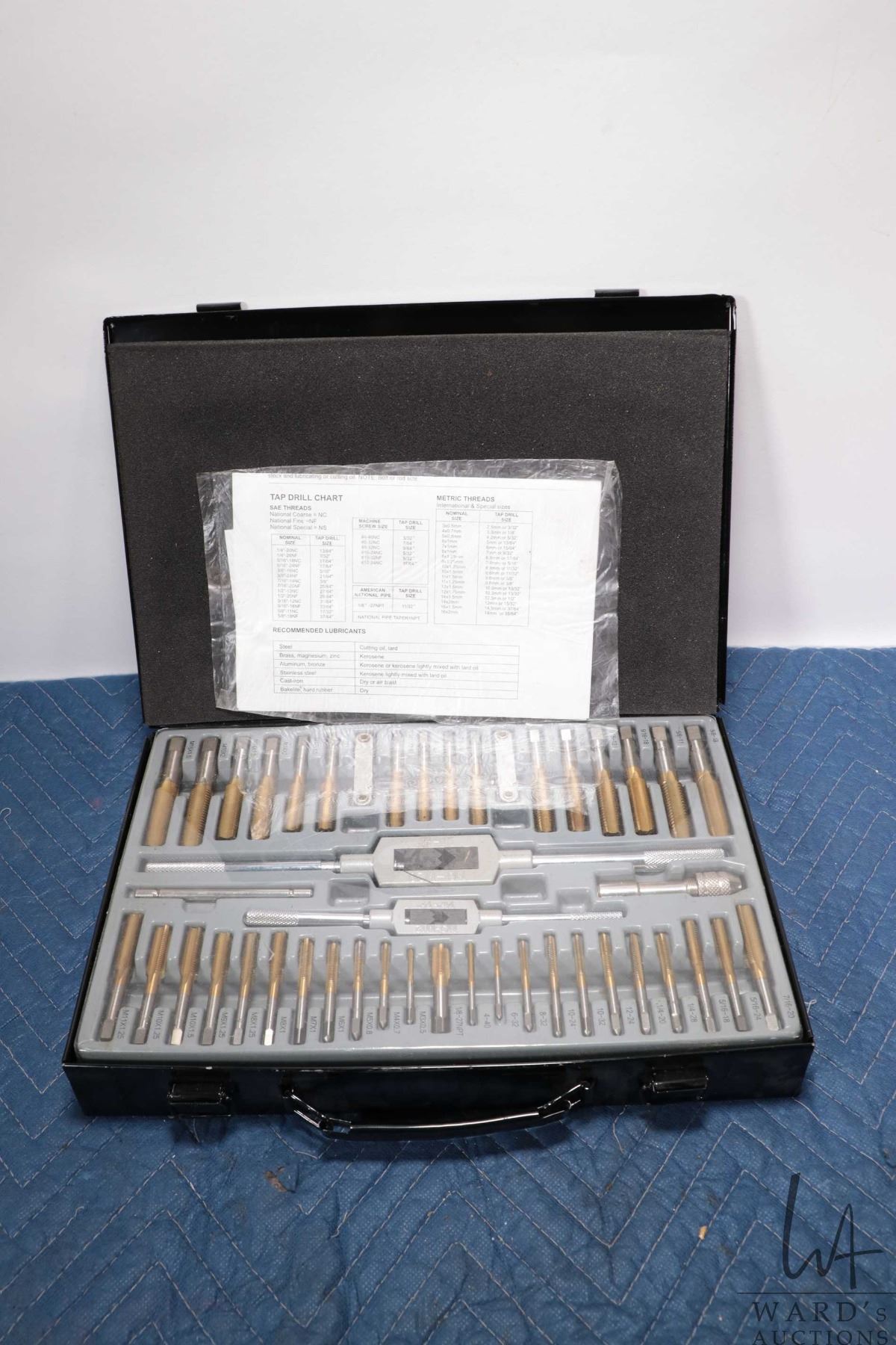 Maximum metric and SAE tap and die set in fitted metal case, appears unused