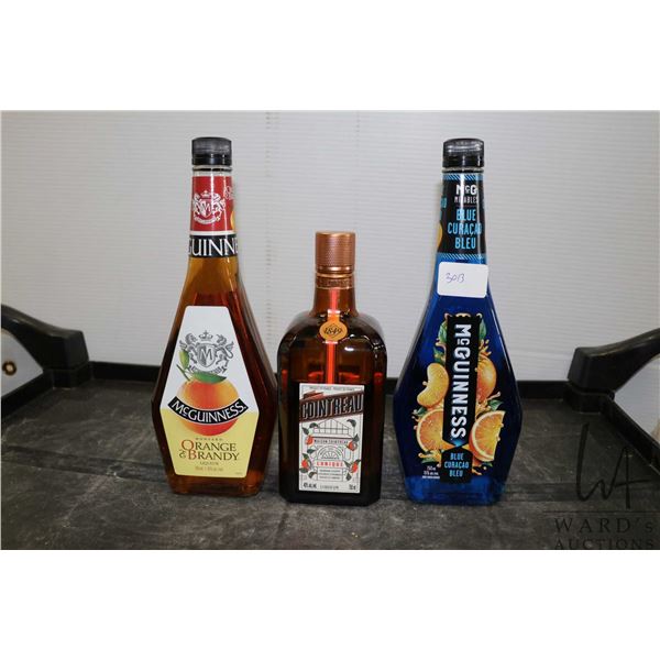 Three assorted bottles of liquor including one McGuiness Orange & Brandy 750ml / 35% ABV, one McGuin
