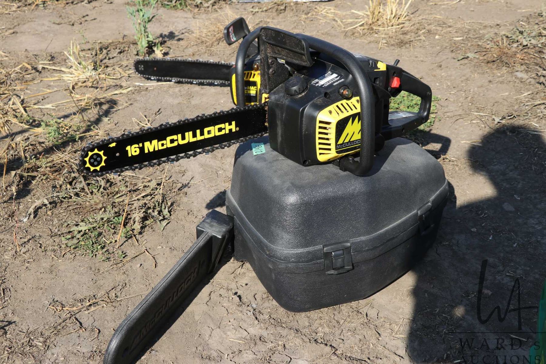 McCulloch CS38EM chainsaw w/ 16" blade and carry case. Working at time of cataloging