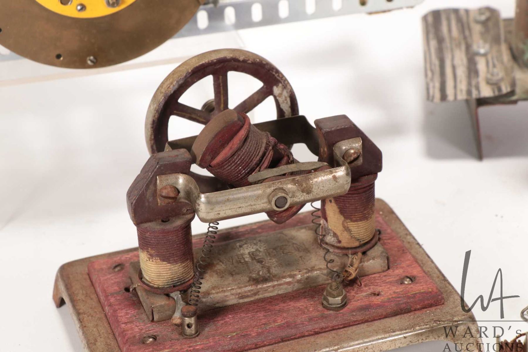 Meccano crankless piston engine, vintage Weeden toy motor no. 101 electro-magnetic generator, a two