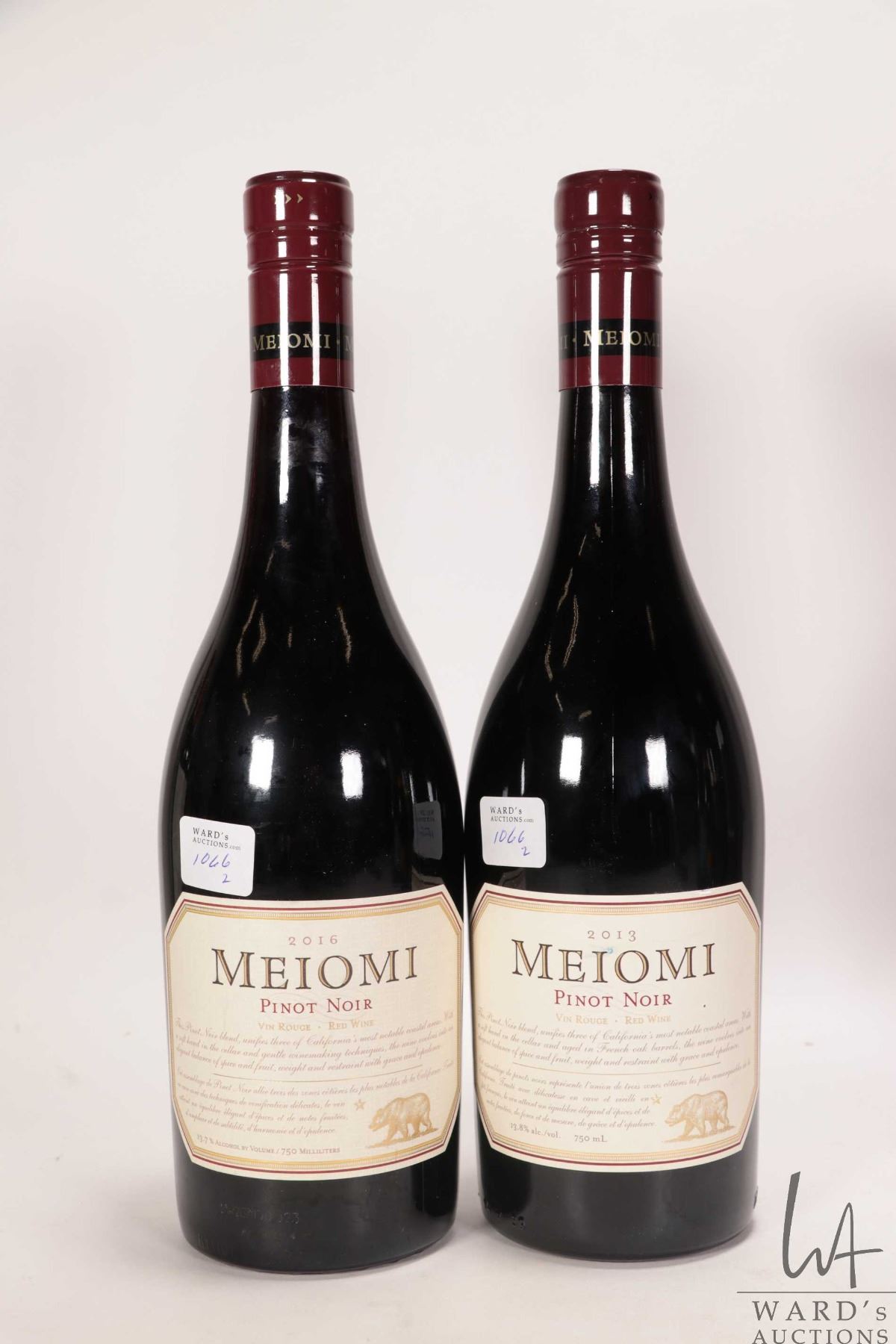 Meiomi/ 2013/ Pinot Noir/ 750ml/ 13.8% ABV and Meiomi/ 2016/ Pinot Noir/ 750ml/ 13.7% ABV Note: Alco