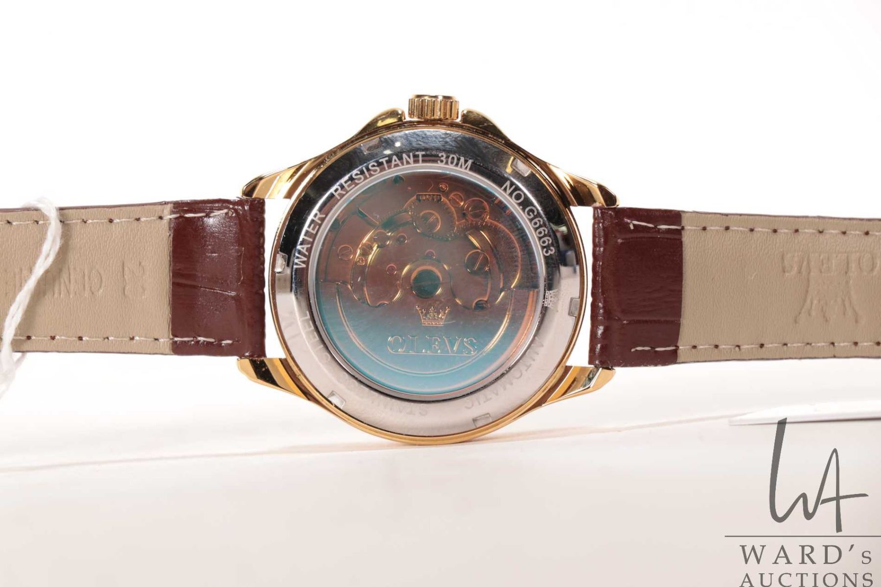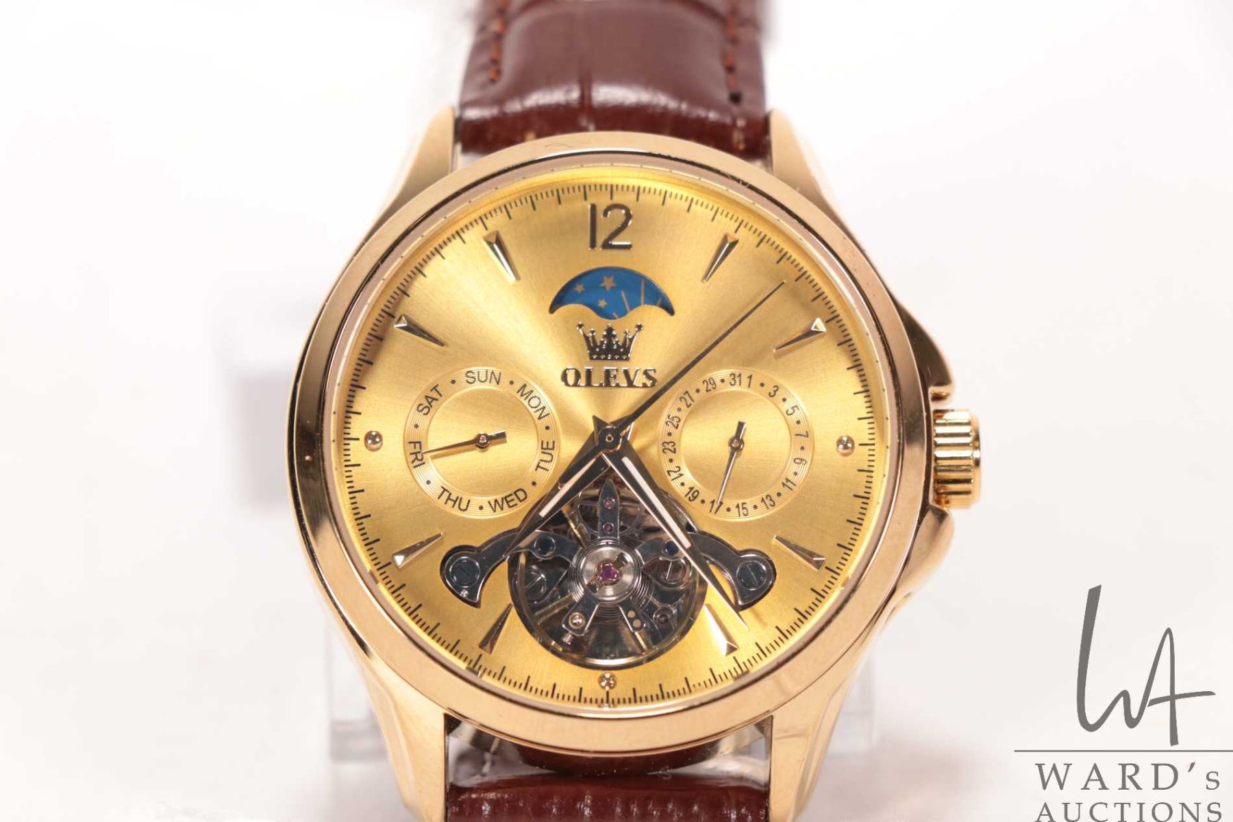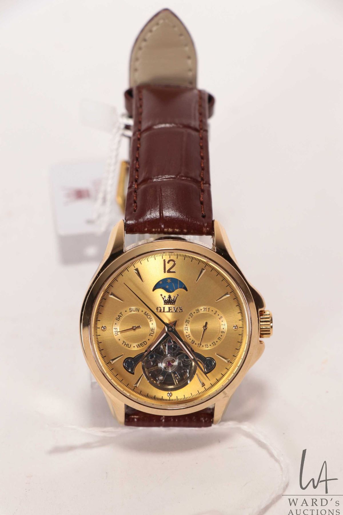 Men's mechanical wrist watch with leather strap, working at time of cataloguing