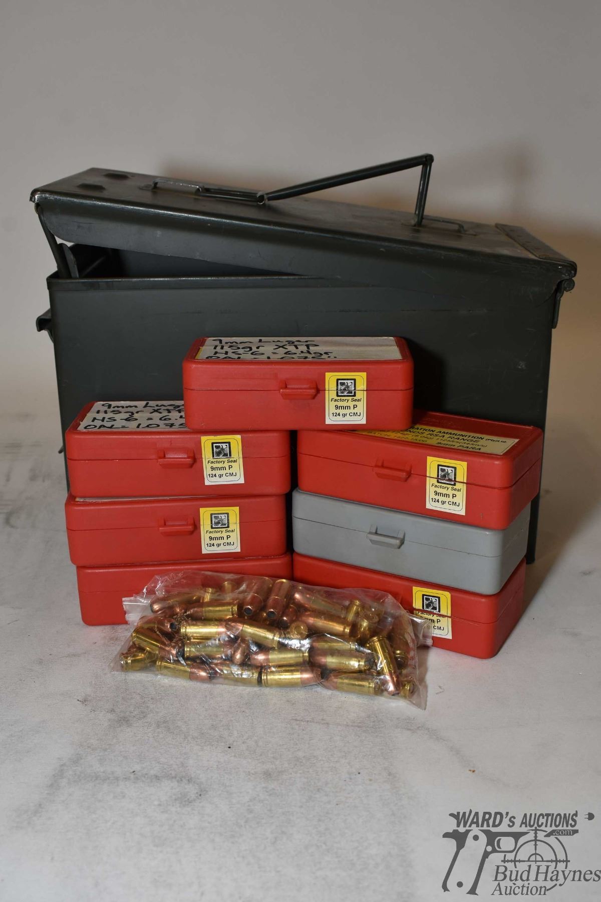 Meral ammo box w/ approx. 400 rounds of 9mm jacketed reloads, mostly hollow point