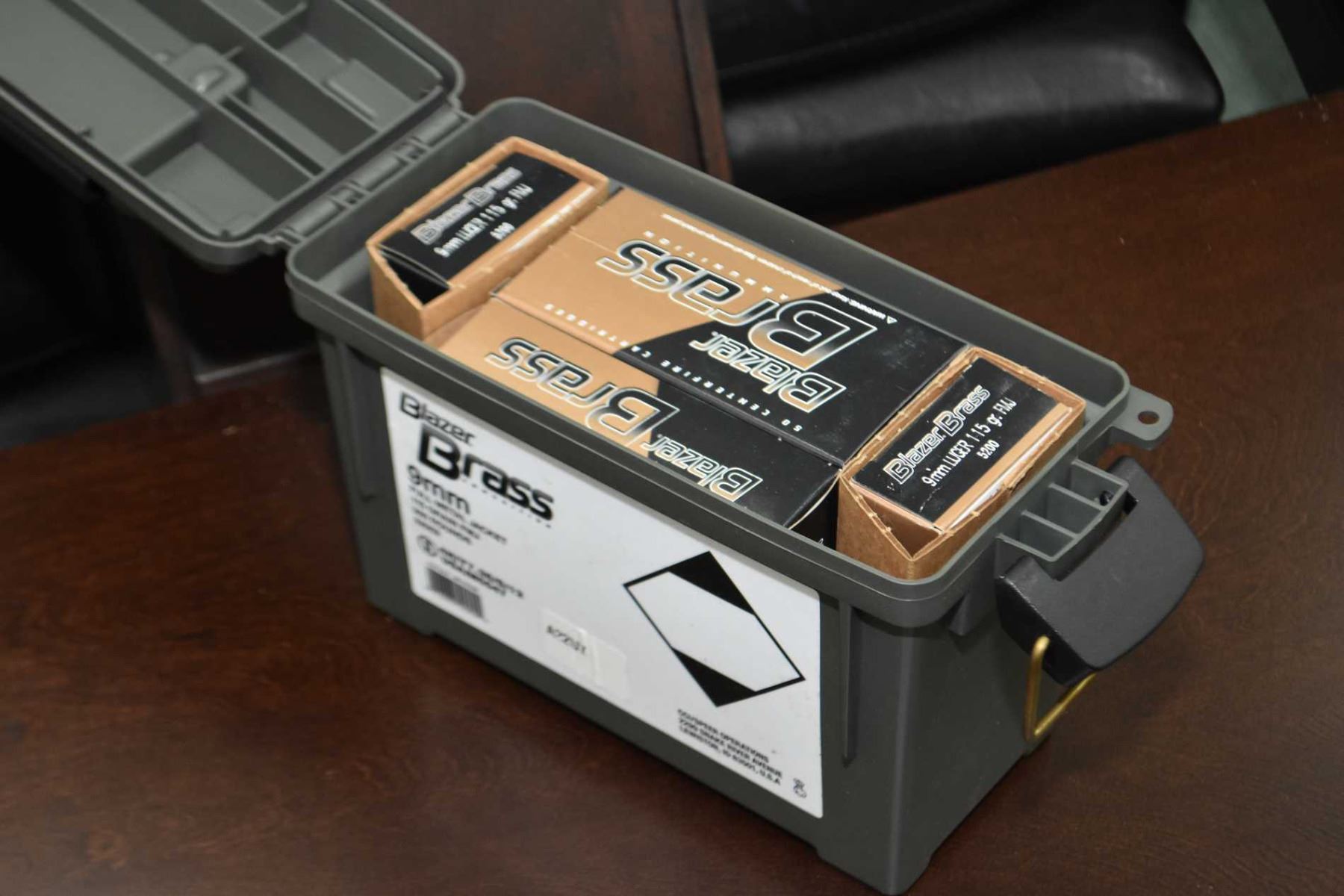 Metal Ammo Box : Blazer . 9 MM Luger Cal Metal Ammo Box : 350 Rnds Blazer Brass . 9 MM Luger Cal 115 Grain Full Metal Jacket Ammo