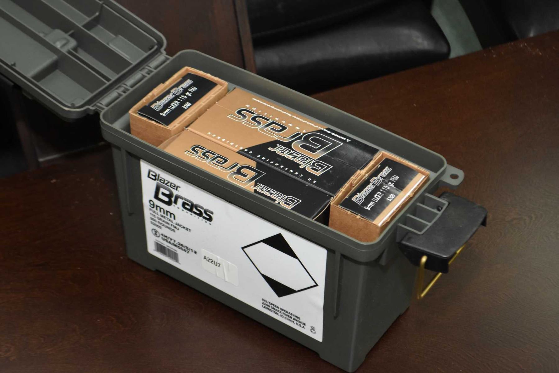 Metal Ammo Box : Blazer . 9 MM Luger Metal Ammo Box : 350 Rnds Blazer Brass . 9 MM Luger Cal 115 Grain Full Metal Jacket Ammo