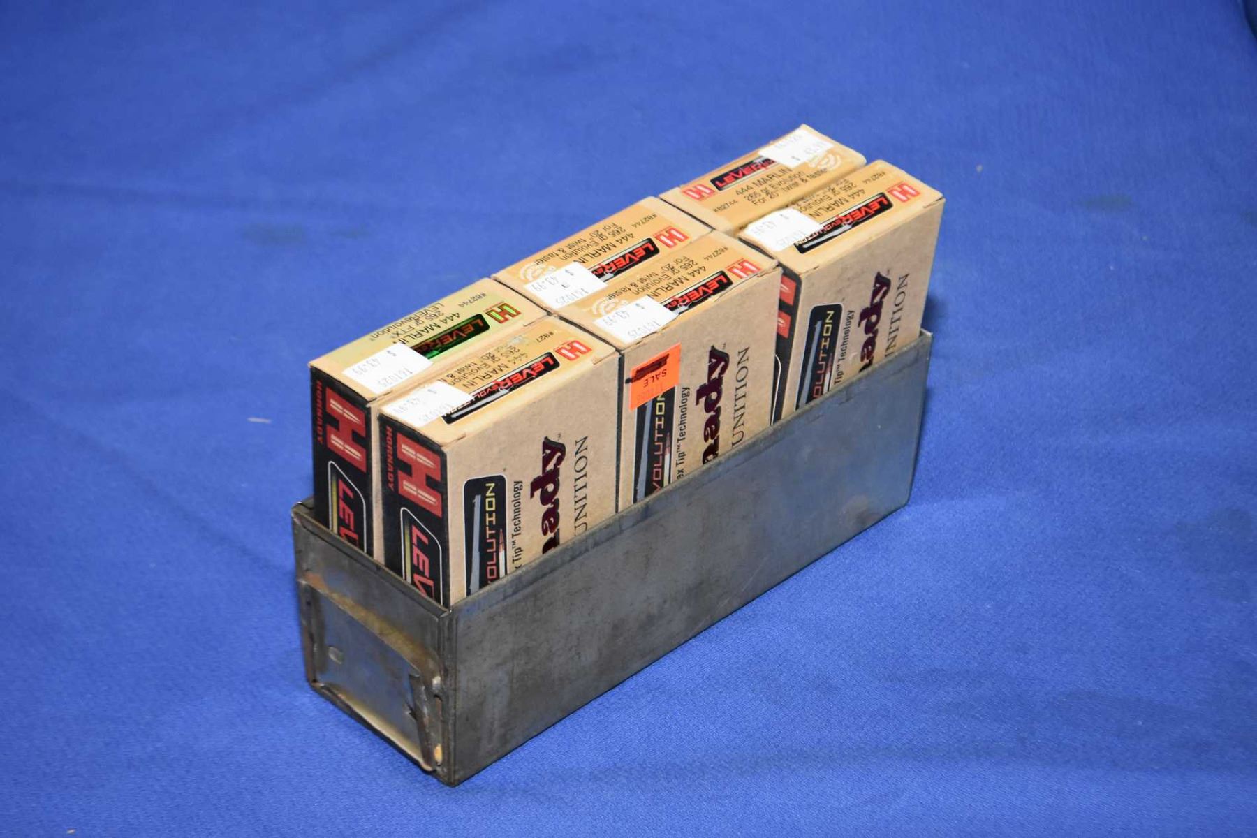 Metal Tray : Six Boxes ( 20 rnds per ) Hornady & Lever Evolution .444 Marlin Cal 165 Grain Factory Ammo