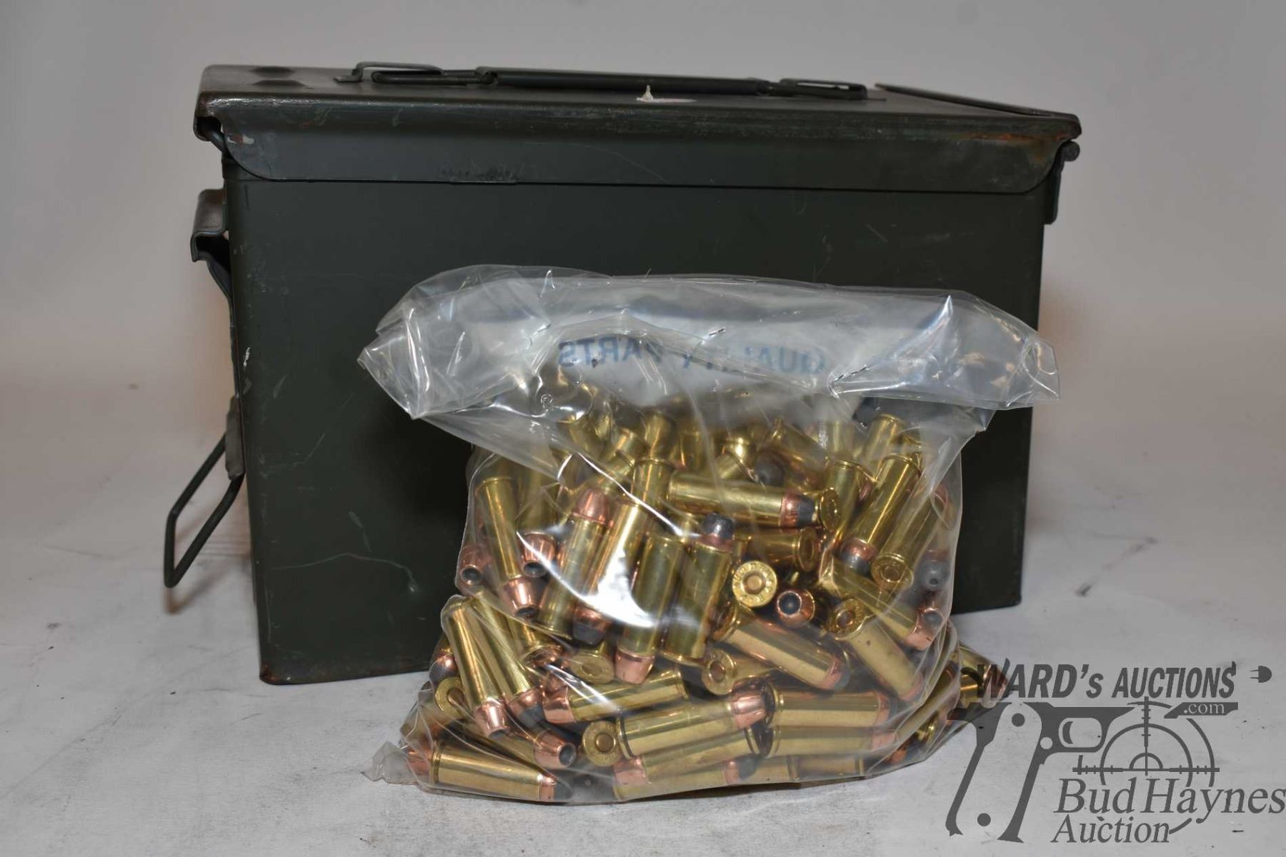 Metal ammo box w/ 200 rounds of .44 rem mag reloads jacketed hollow point