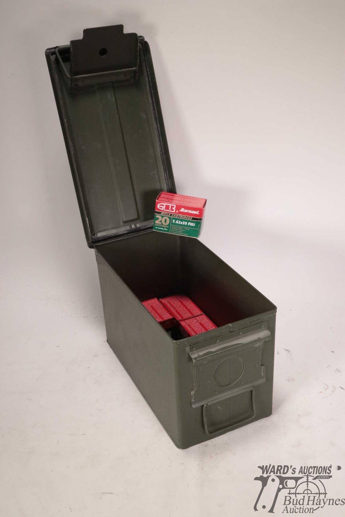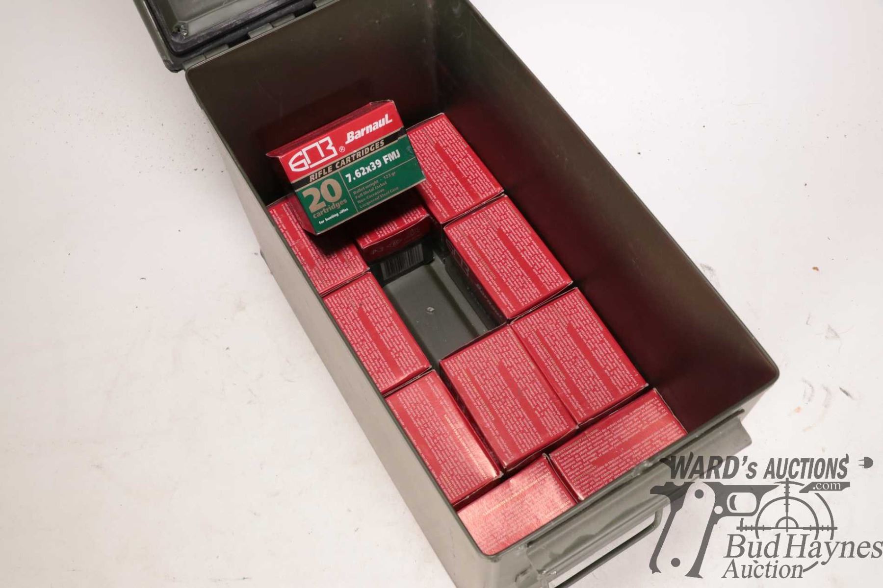 Metal ammo box w/ twelve full 20 count boxes of Metal ammo box w/ twelve full 20 count boxes of Barnaul 7.62x39 123 gr FMJ