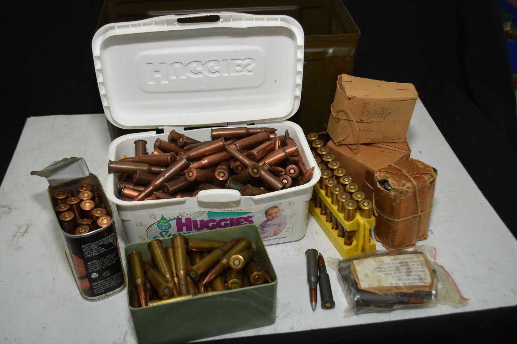 Metal ammunition can containing large selection of predominately 7.62 ammunition, some in factory packaging