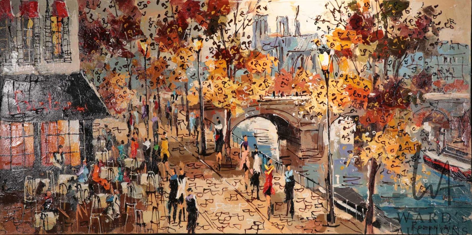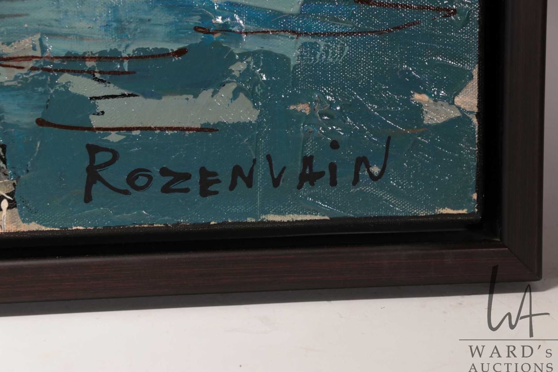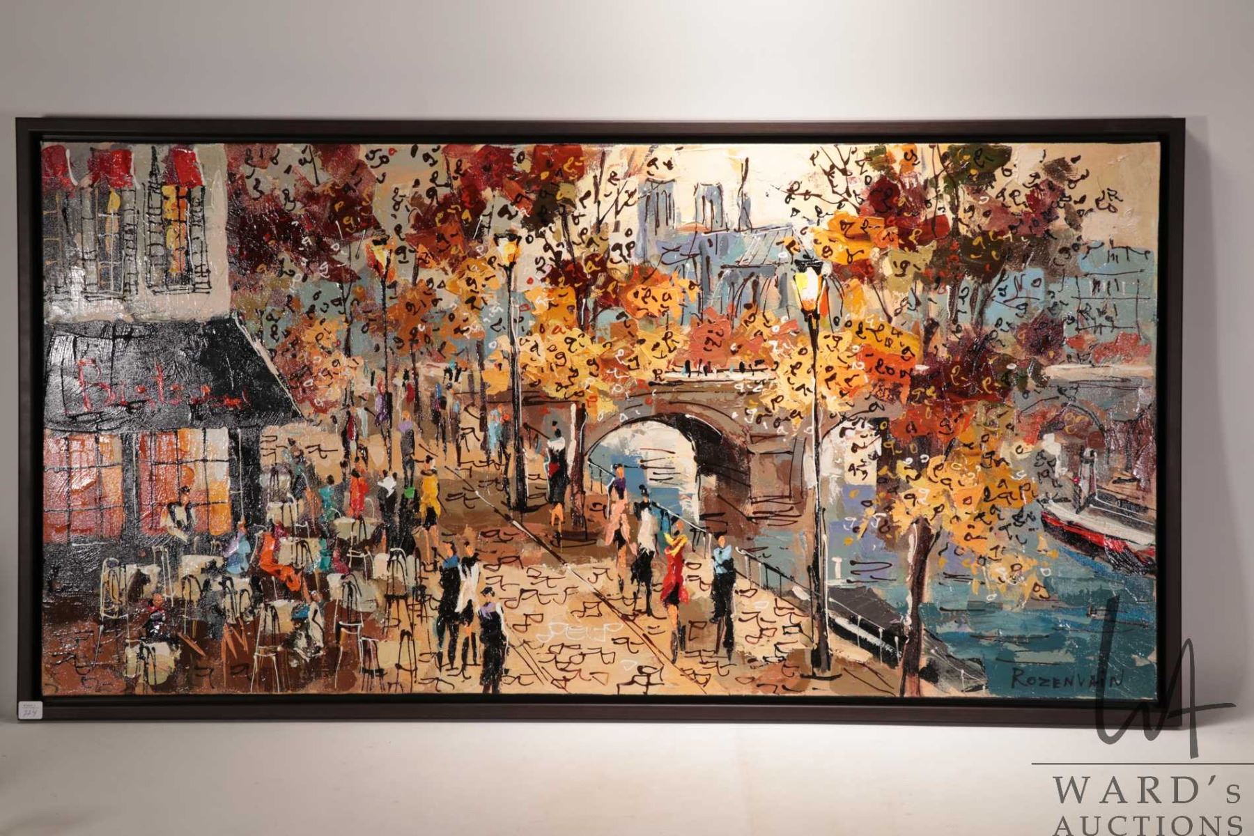 Michael Rozenvain framed original oil on canvas painting, titled on verso " Au bord de la Seine", 24" X 48". Note: This is too large to ship. Local pickup only