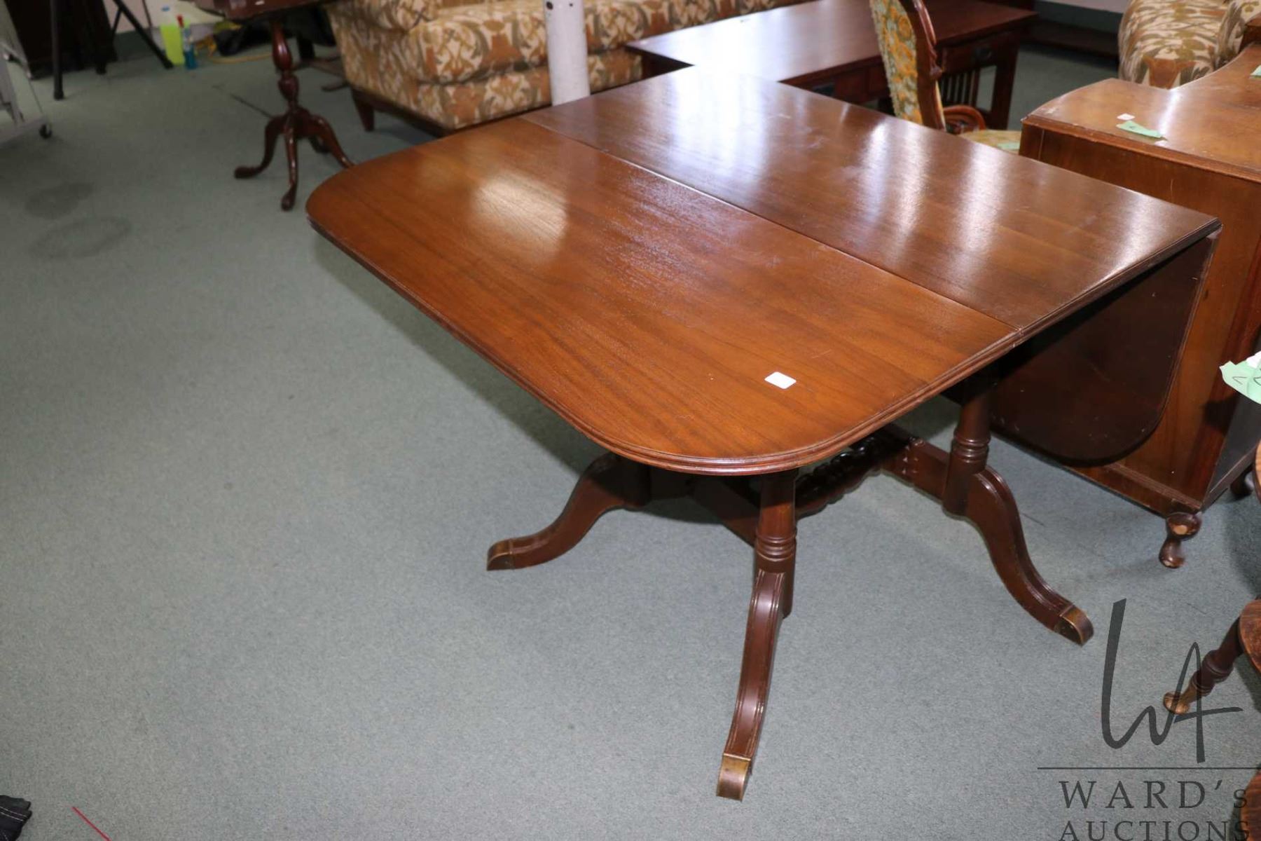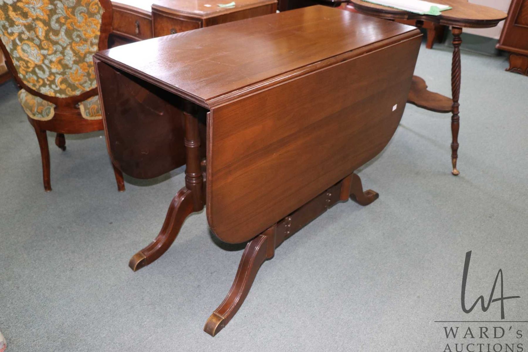 Mid 20th century Regency style drop leaf, walnut table with swing out table supports 29" H X 39" plus two 17" leaves