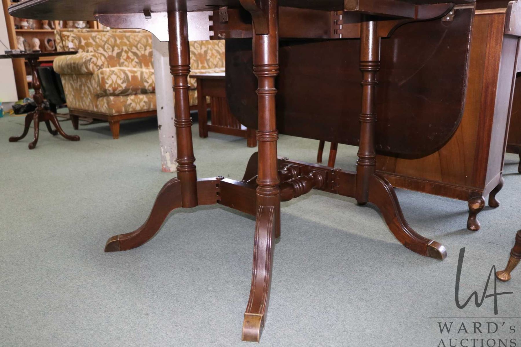 Mid 20th century Regency style drop leaf, walnut table with swing out table supports 29" H X 39" plu