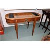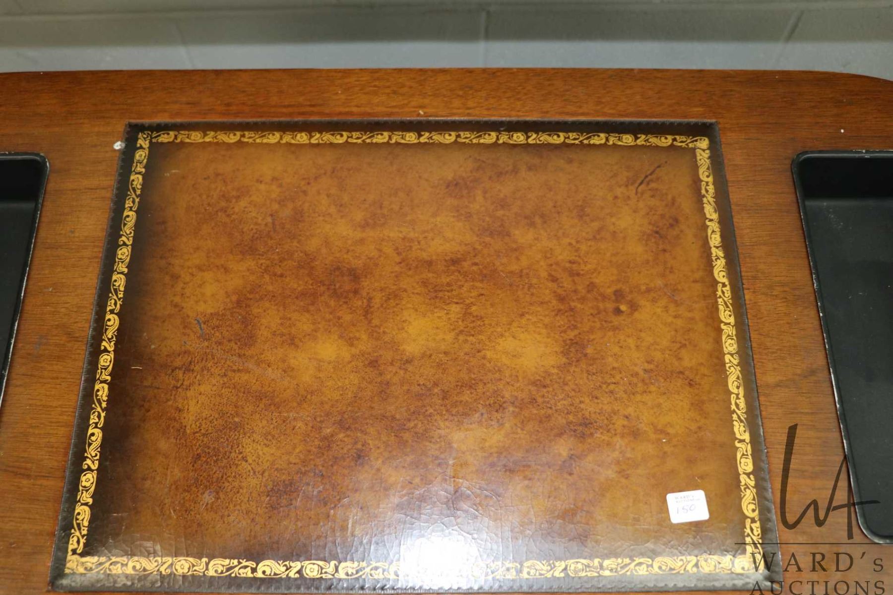 Mid 20th century, antique style mahogany console with leather inset center section and two sunken me