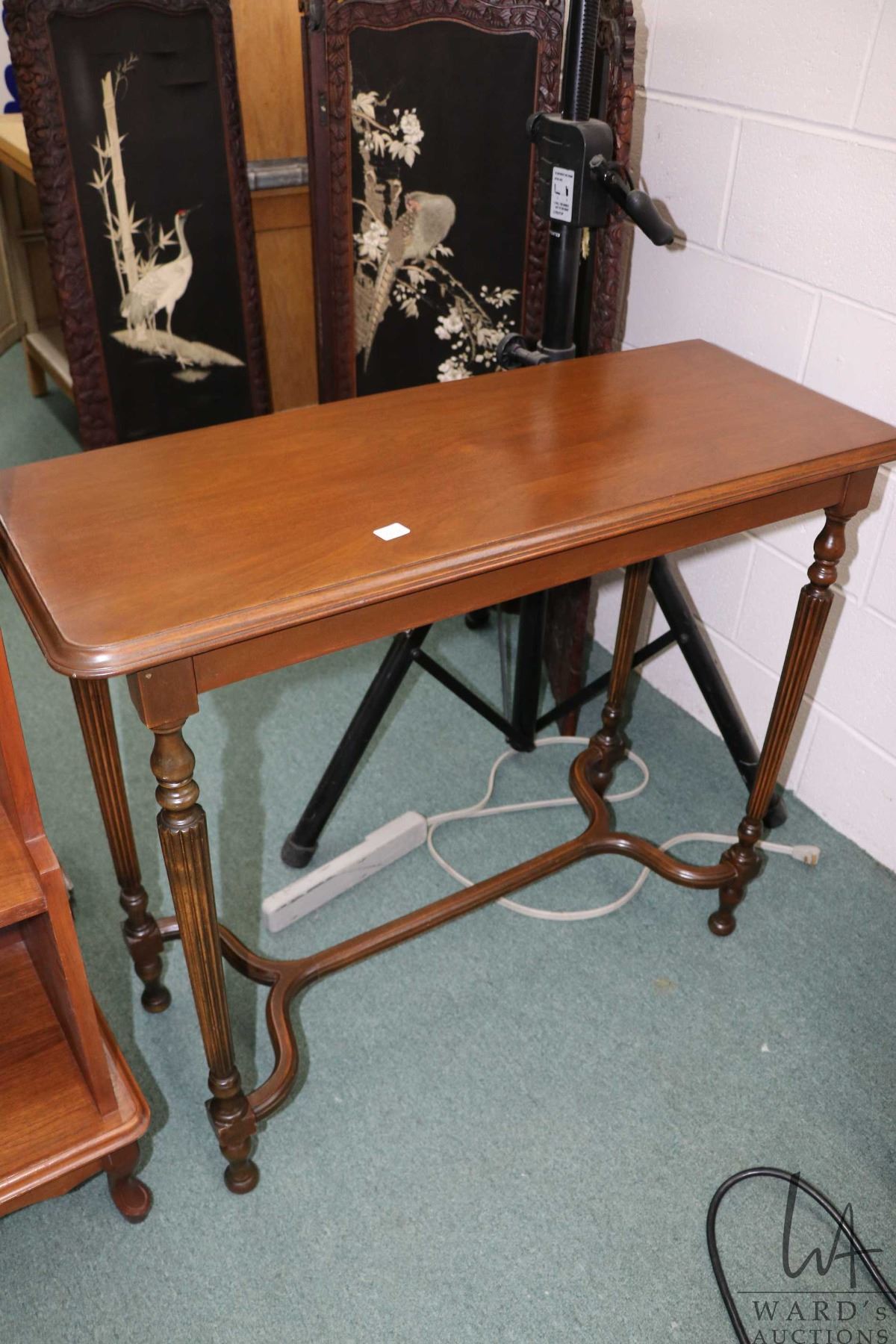Mid 20th century console table with reeded supports, 31" high X 36" wide X 14" deep