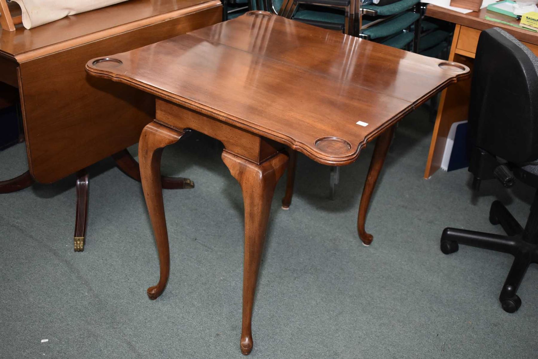 Mid 20th century games table on tall cabriole supports, note currently permanently in the open position, used to be a fold over table