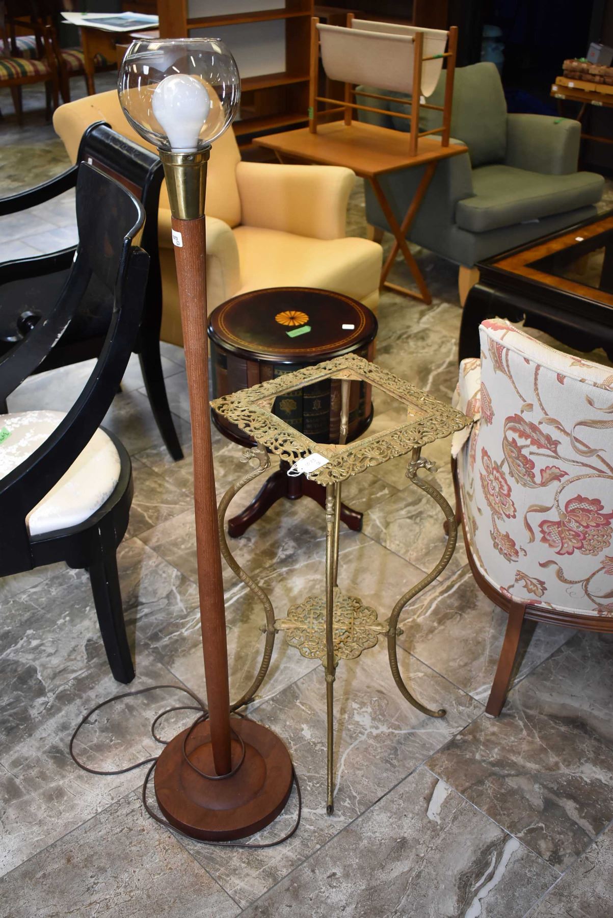 Mid century modern floor lamp and a cast two tier stand missing center panel