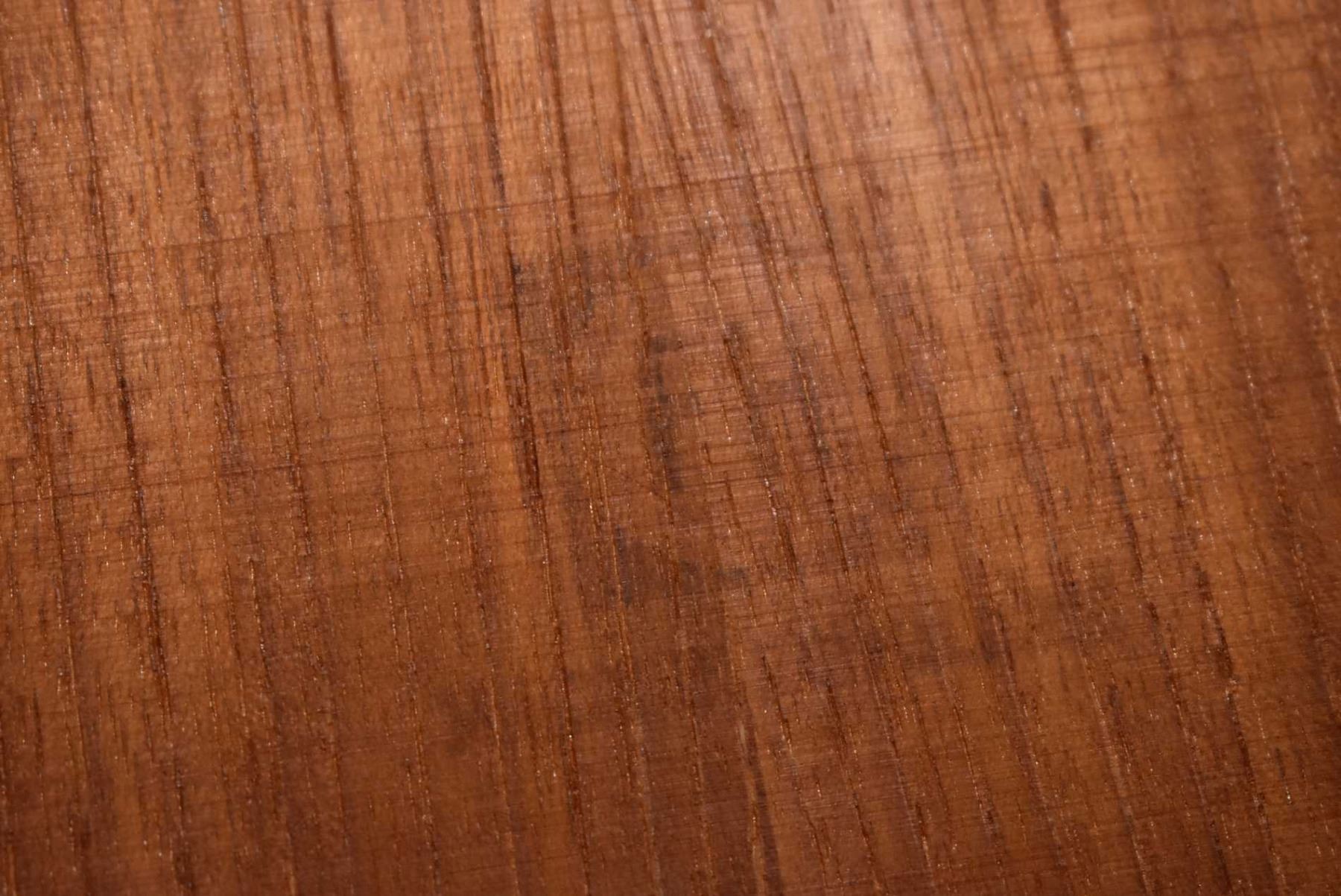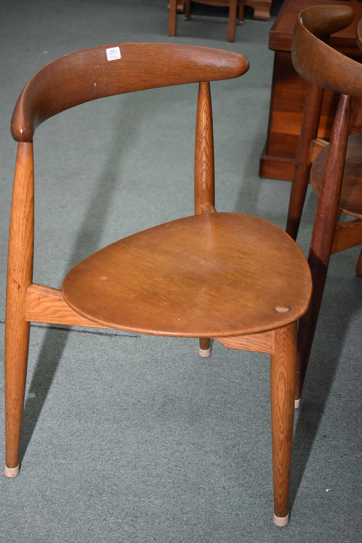 Mid century modern round dining table with six, three legged all Danish teak and labelled Fritzhansen, note three legged design of the chairs allows all six chairs to fit snugly inside table
