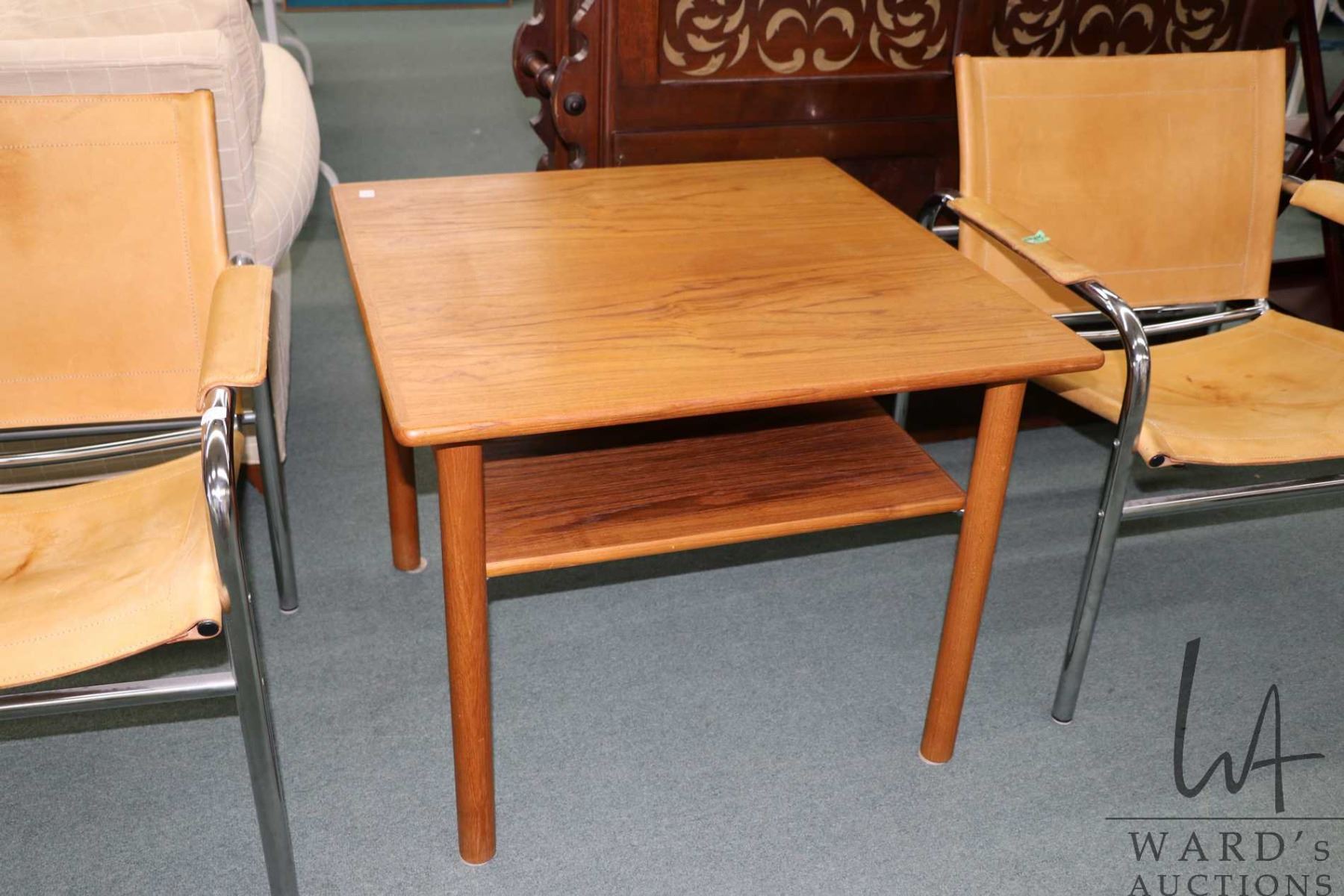 Mid century modern teak occasional table with under shelf 23" H X 29" square