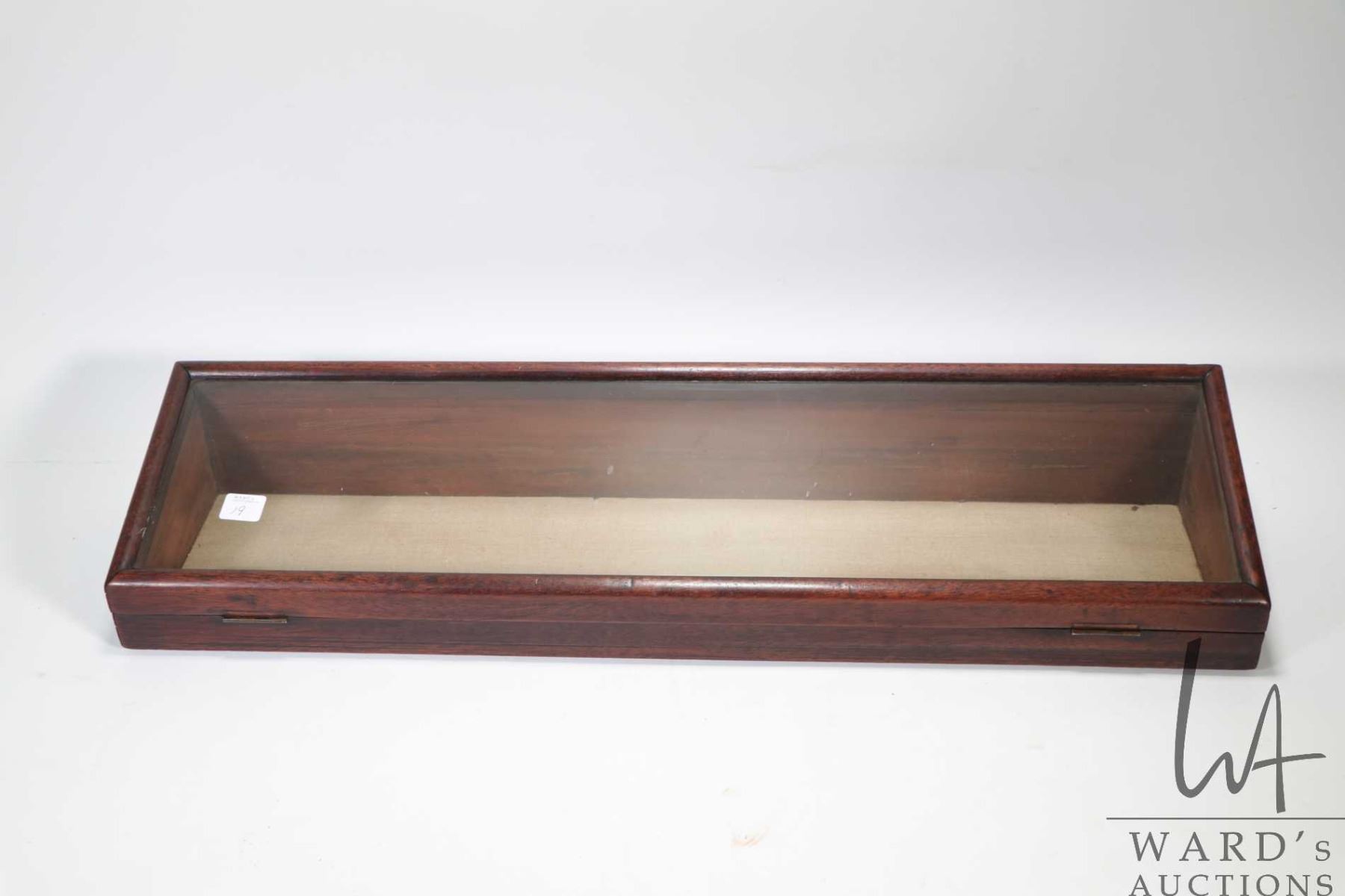 Miniature mahogany display cabinet 27" in width X 7" deep, with a tapered front