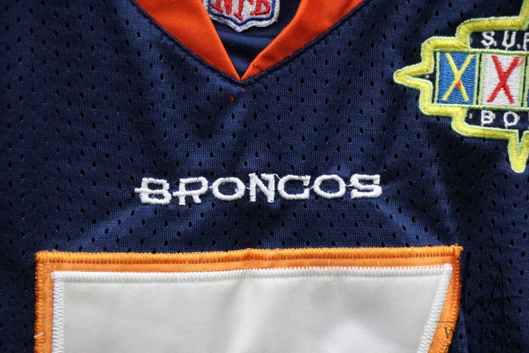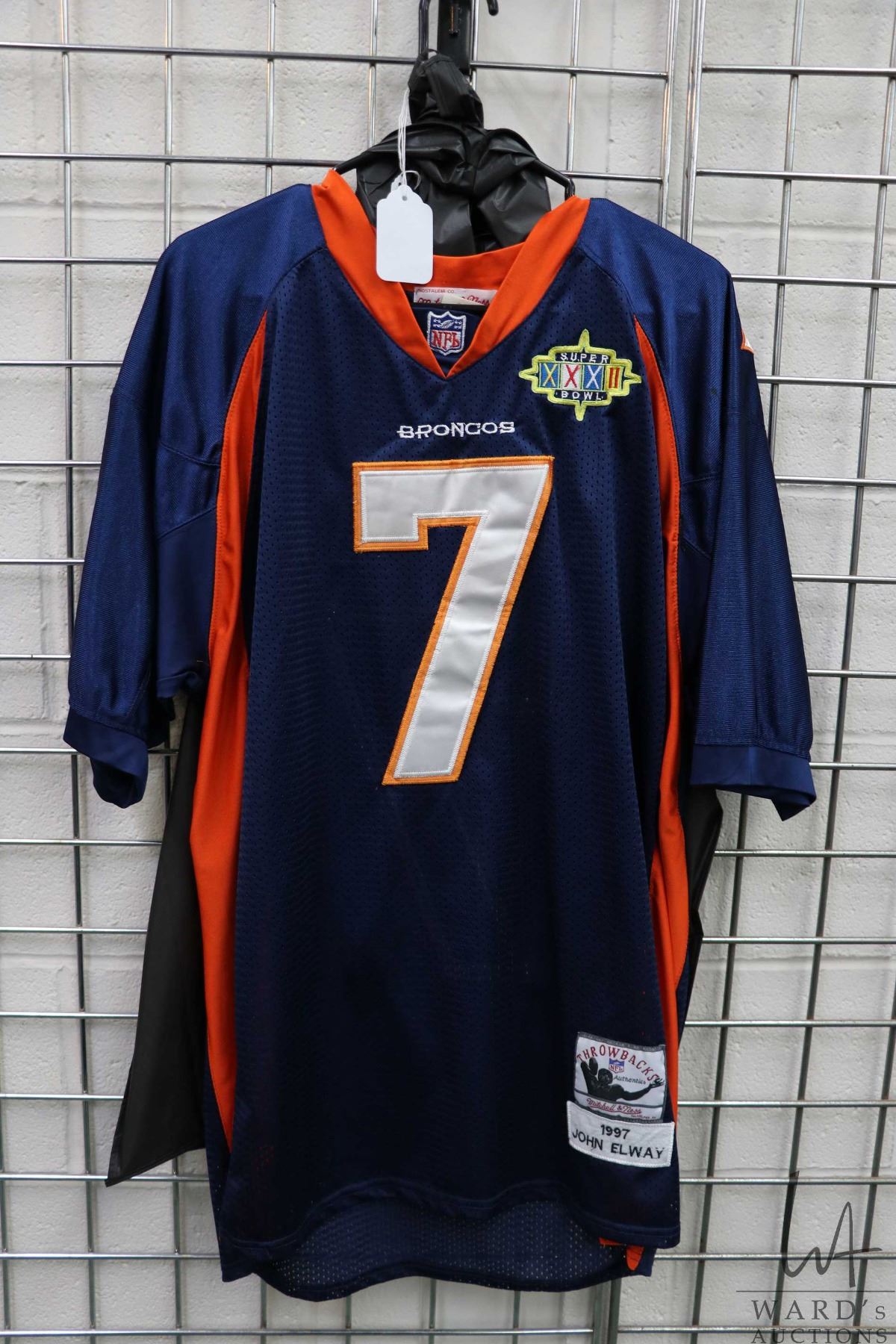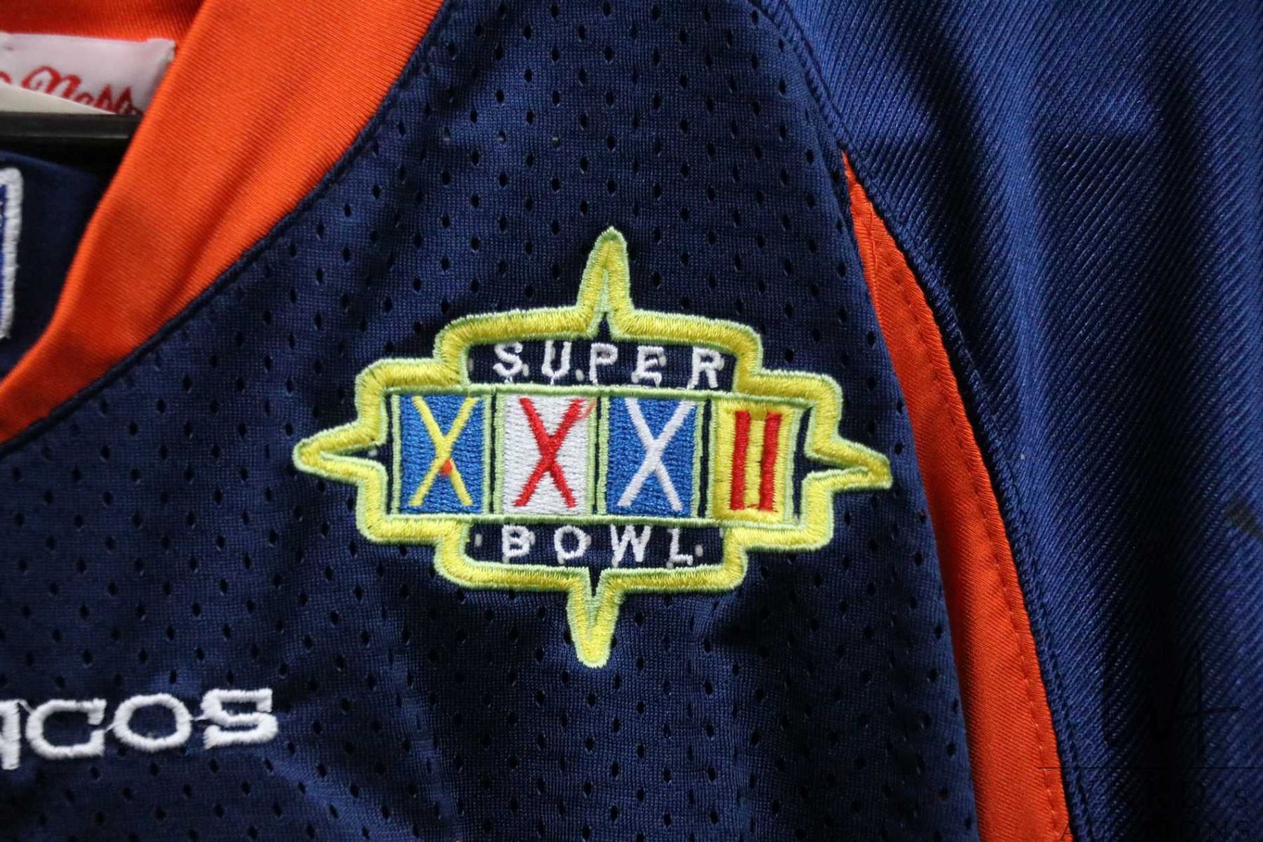 Mitchell & Ness Super Bowl XXXII (1997) Denver Broncos John Elway No. 7 football jersey. Adult size 52