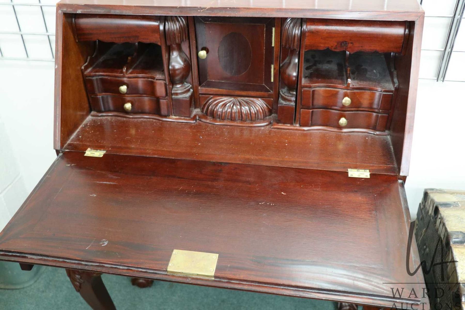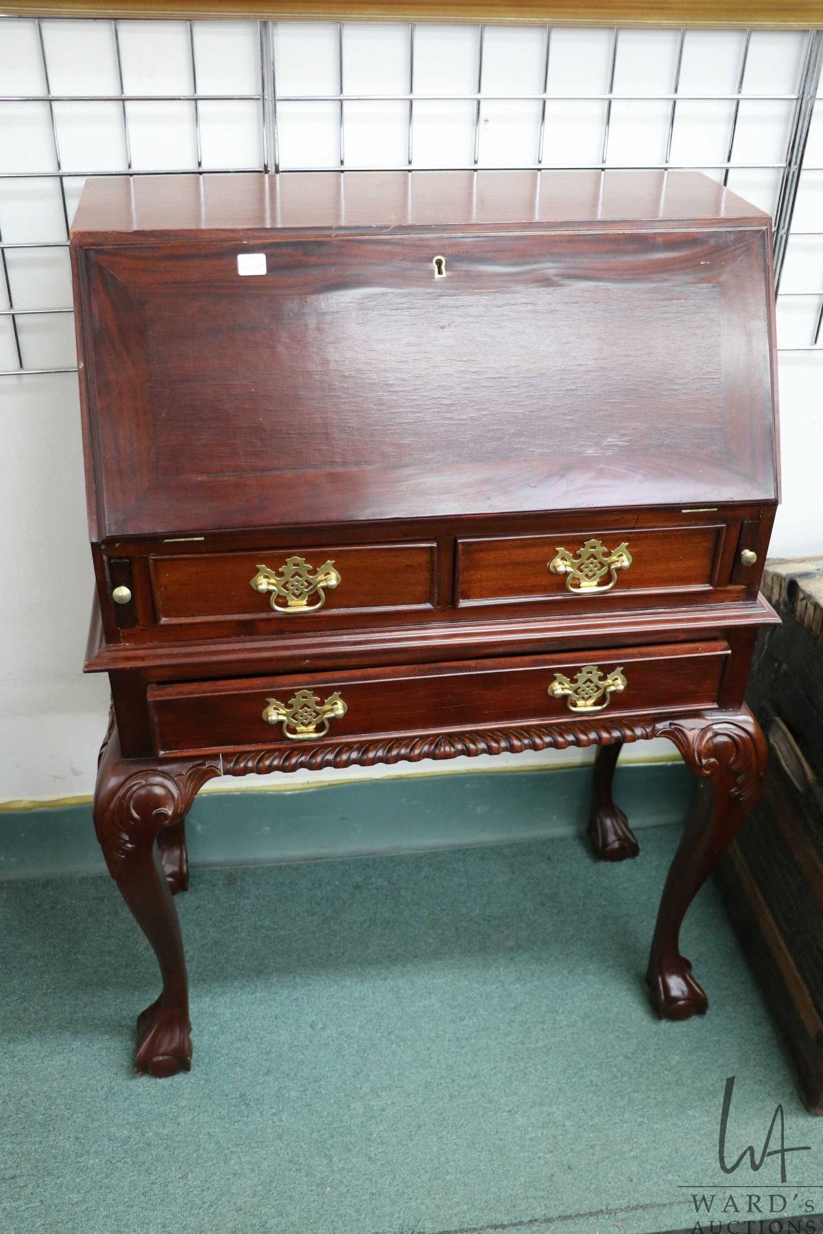 Modern Chippendale style fall front writing desk with fitted interior, 41" H X 30" W X 15" D