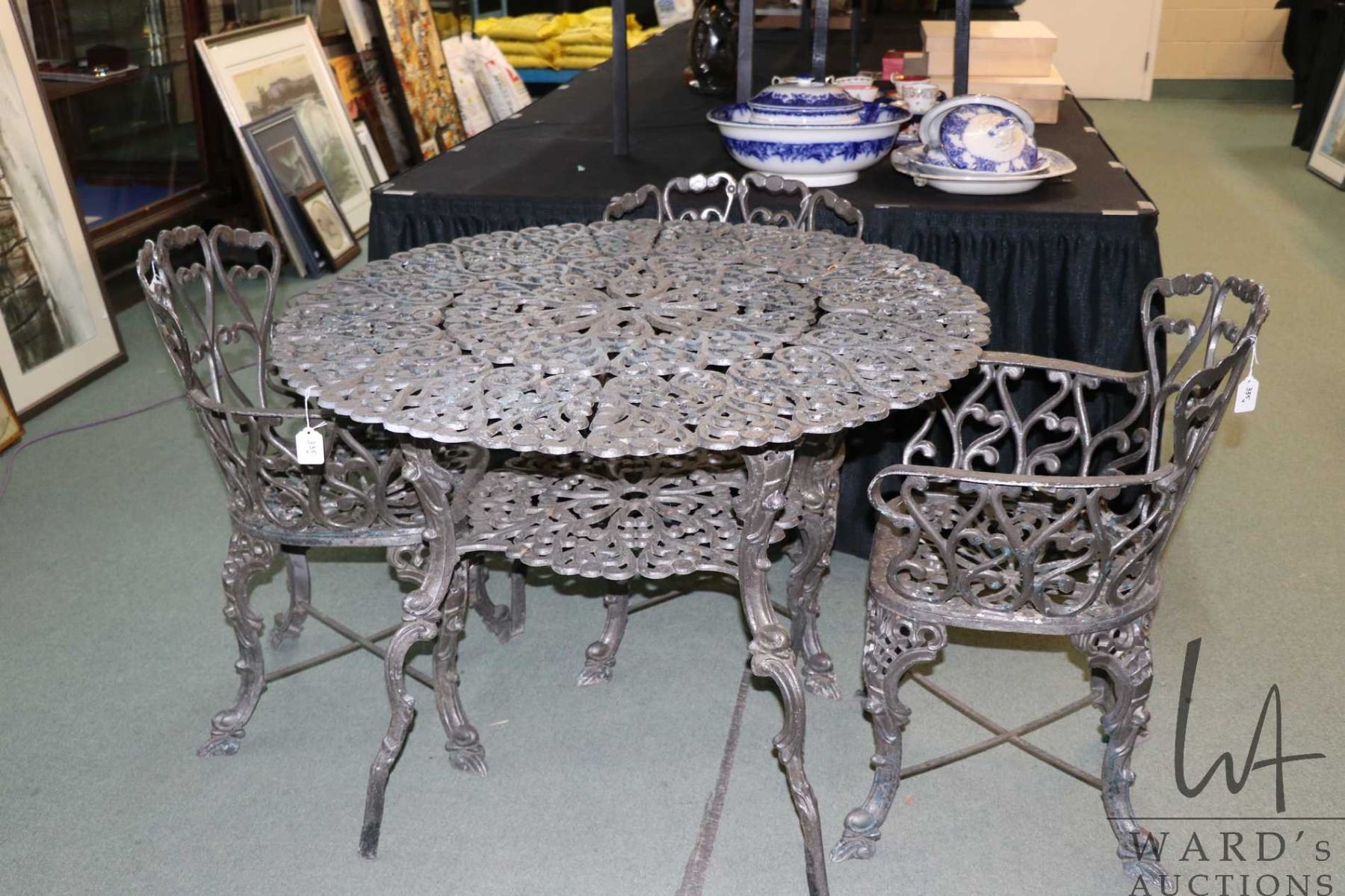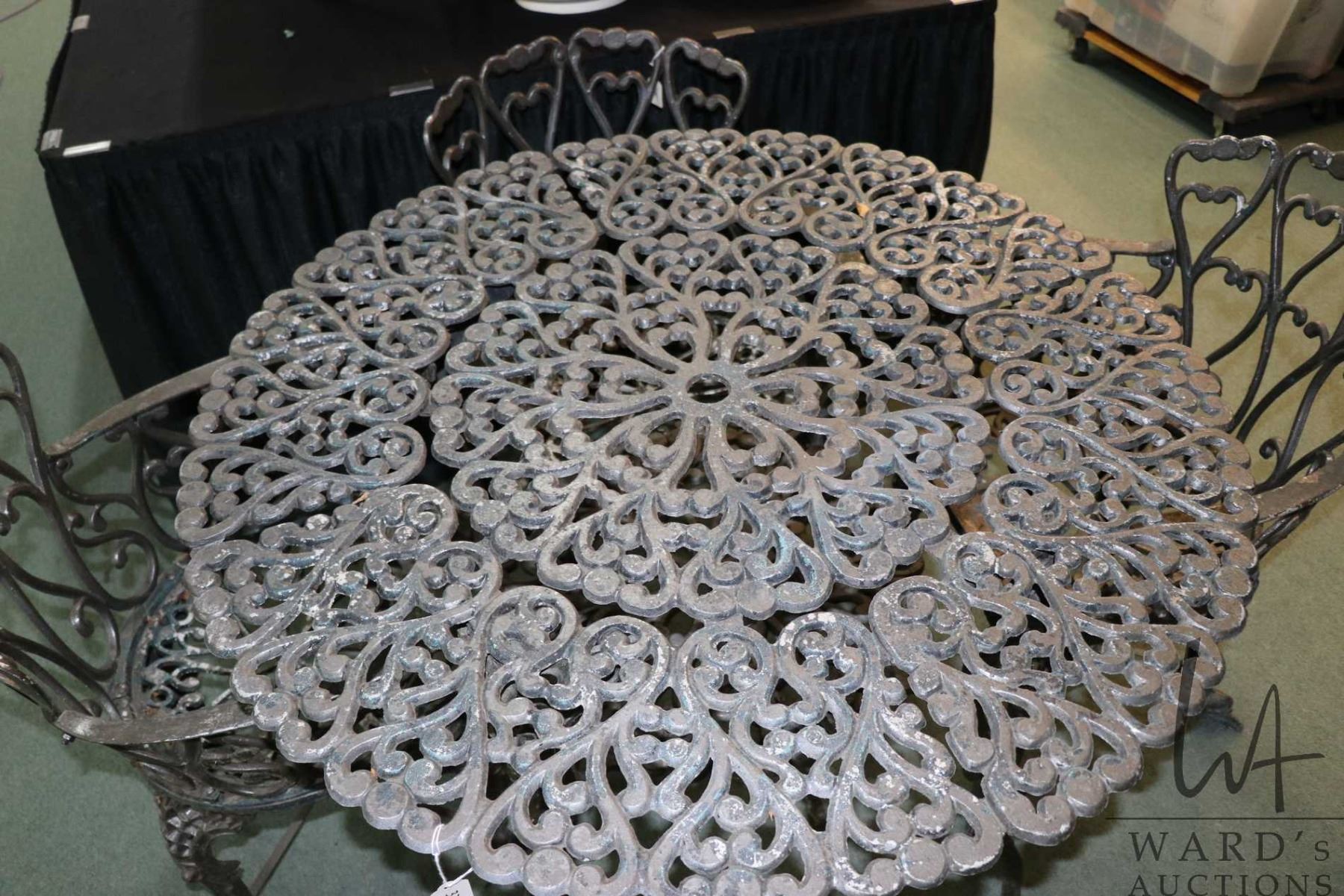 Modern cast alloy 38" diameter solarium/ patio table and three chairs