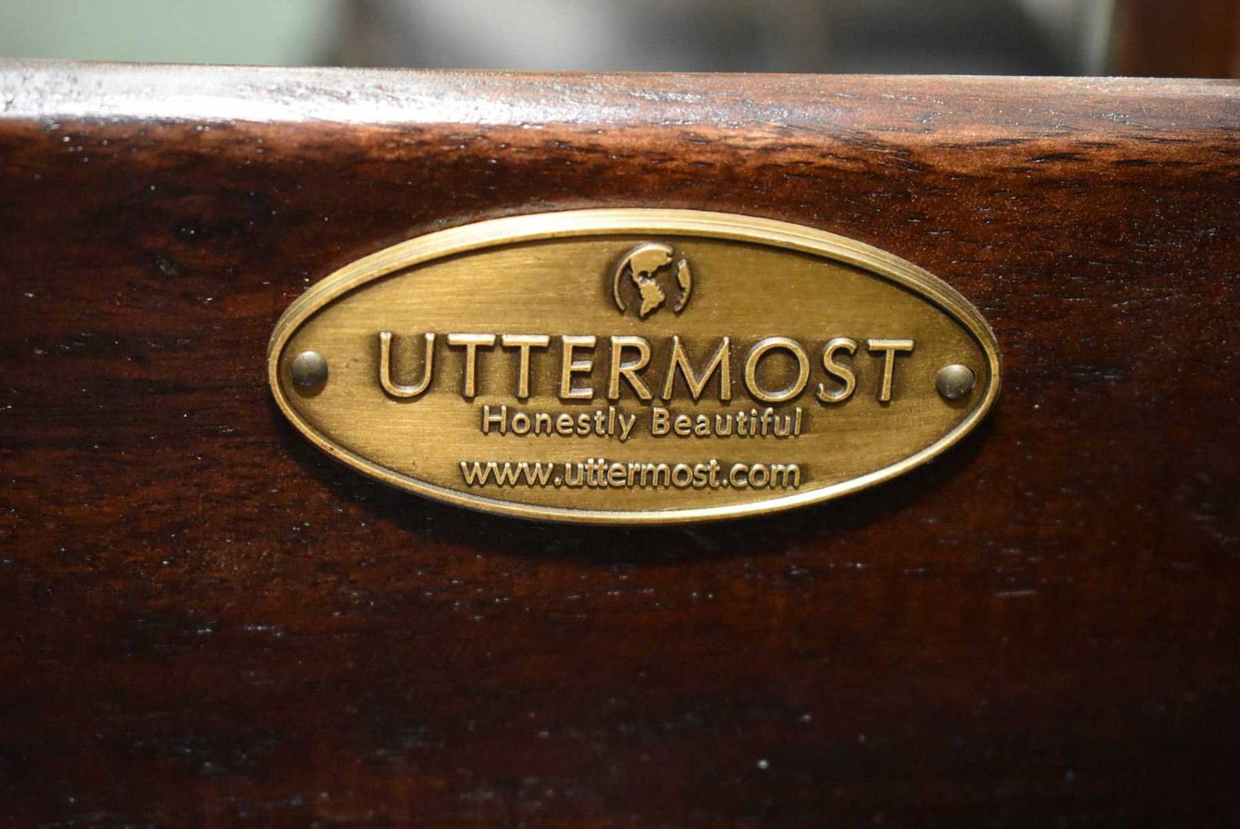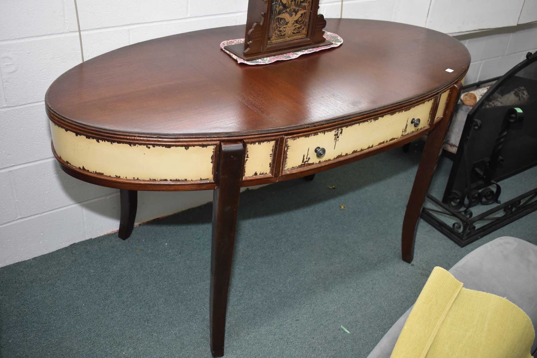 Modern deco style oak and distressed painted single drawer writing desk made by Uttermost