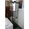 Modern illuminated glass and metal single door display cabinet, 64" H X 15" D and a wall mount two d