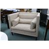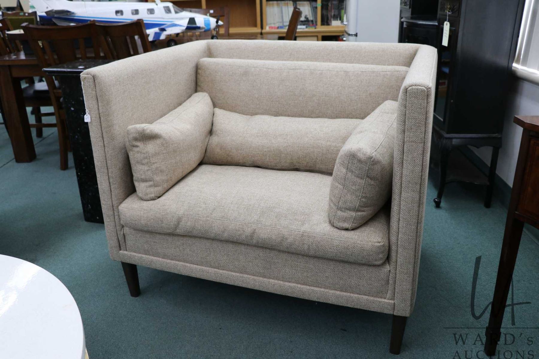 Modern mid century oversized deep upholstered parlour on tapered wooden legs, 36" H X 43" W X 36" D