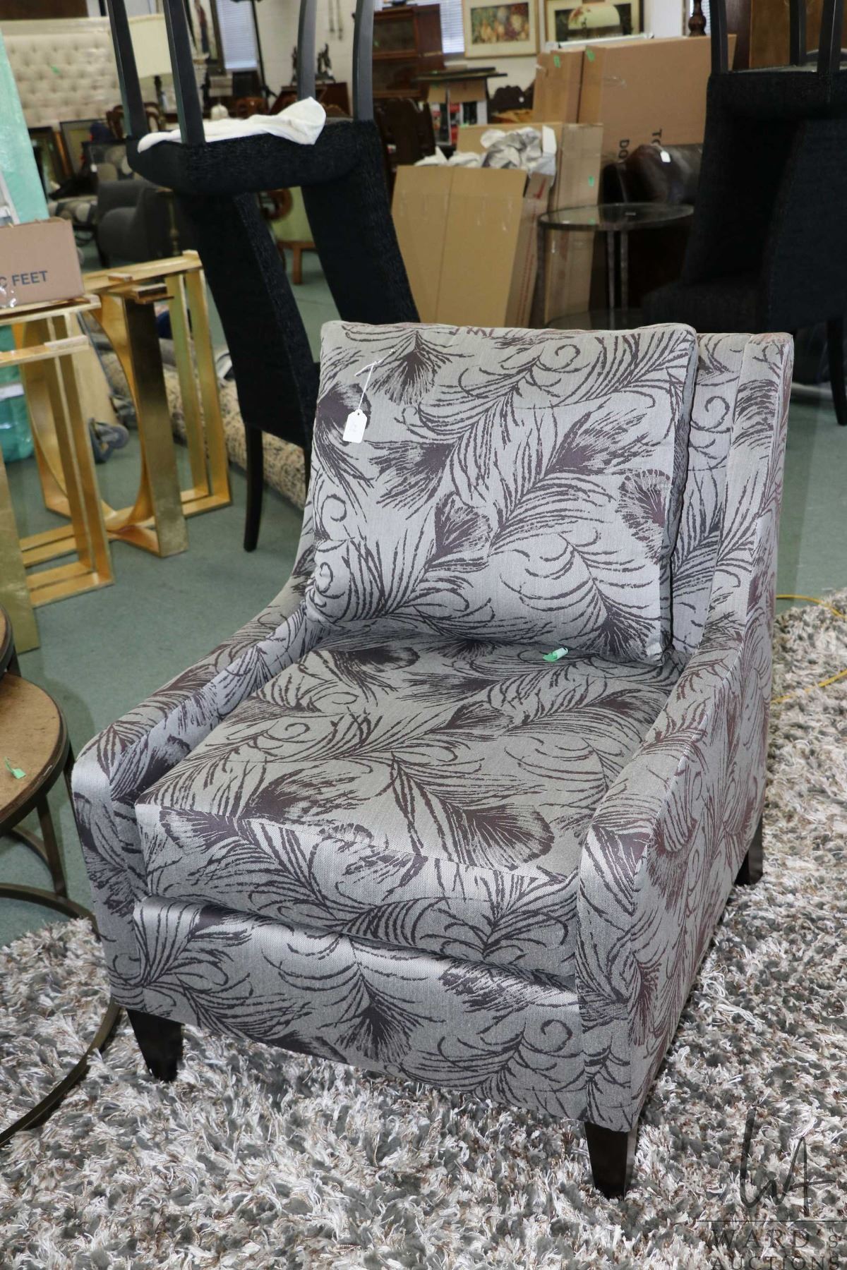 Modern parlor chair with feather patterned upholstery, purchased at Cottswood