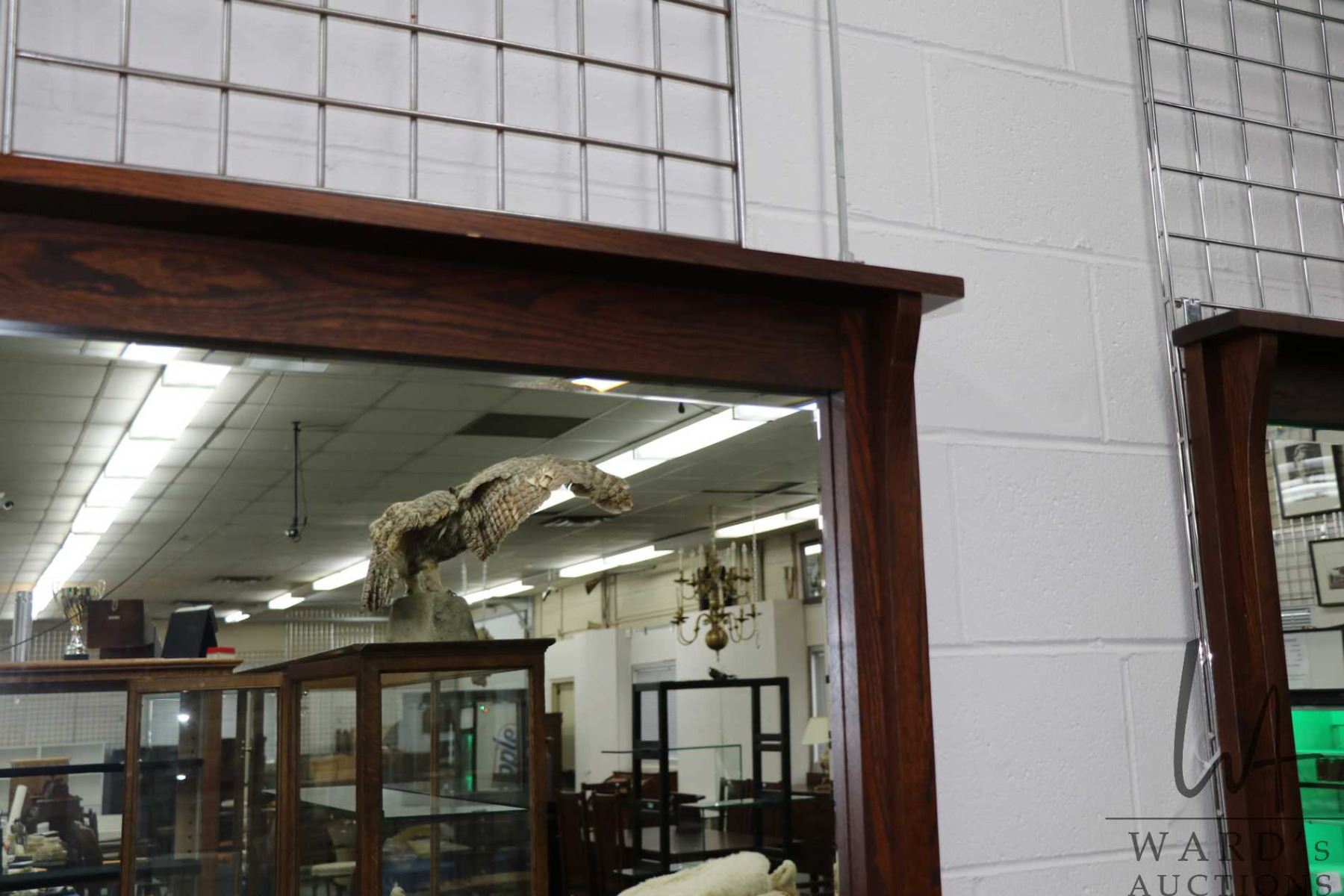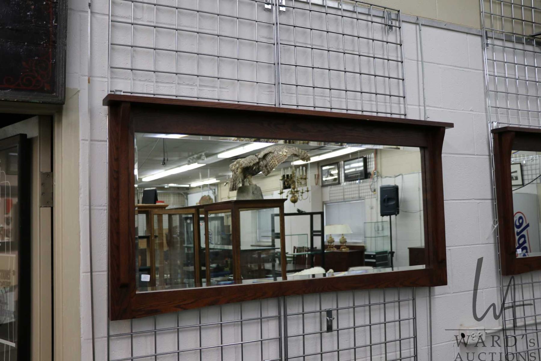 Modern quality made Mission style oak framed, bevelled wall mirror, outside dimensions 27" X 55"