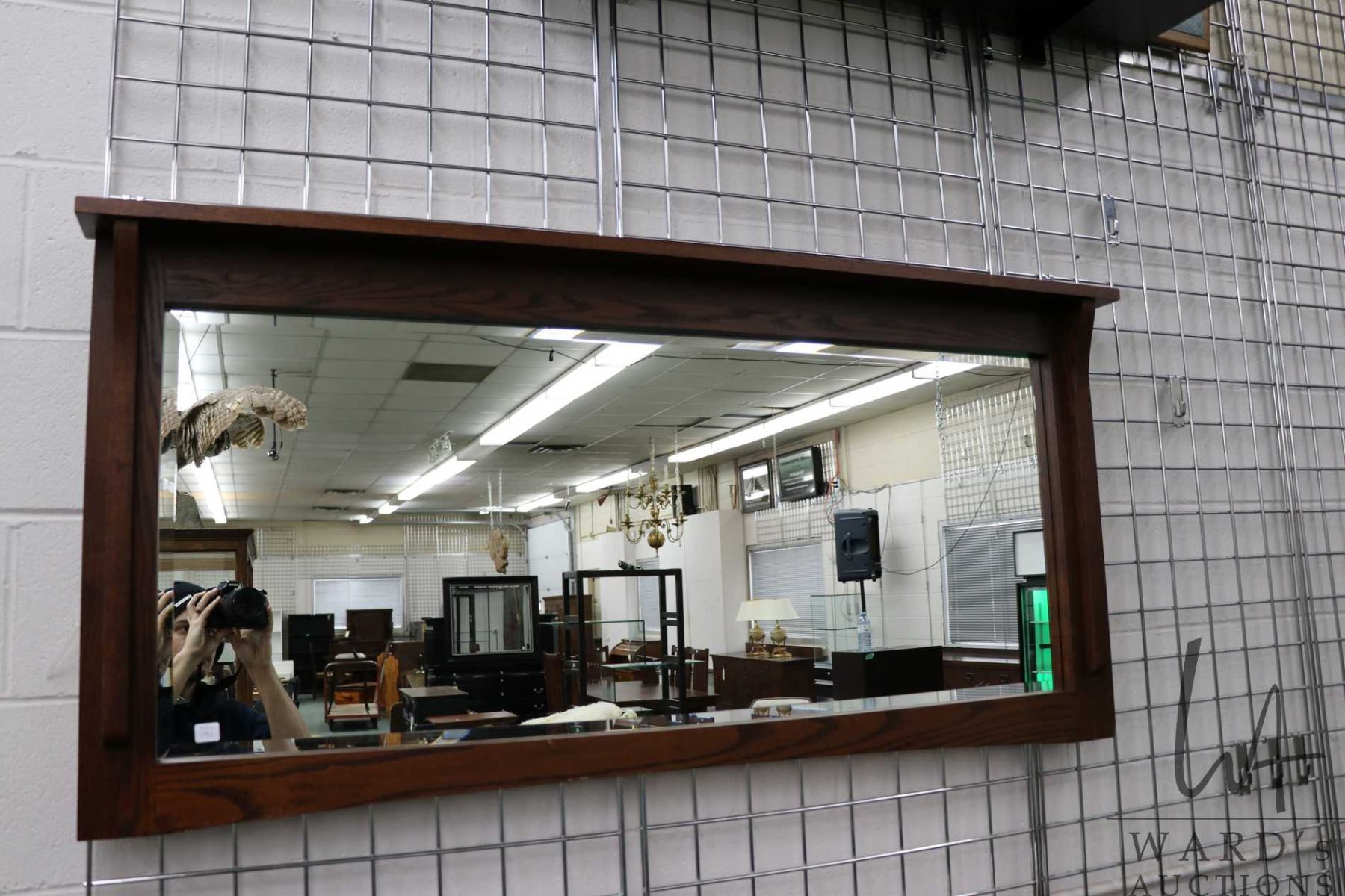 Modern quality made Mission style oak framed, bevelled wall mirror, outside dimensions 27" X 55"