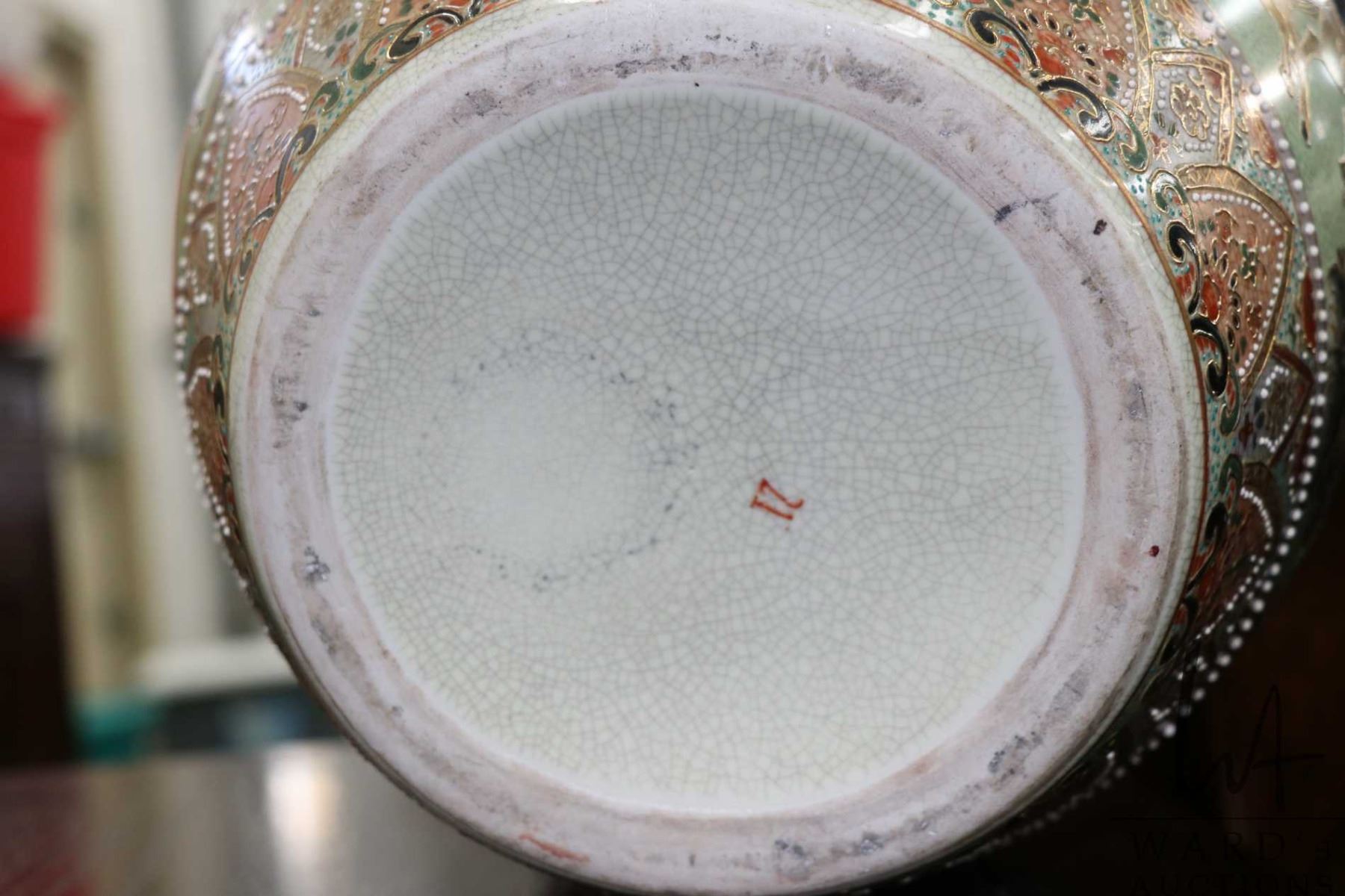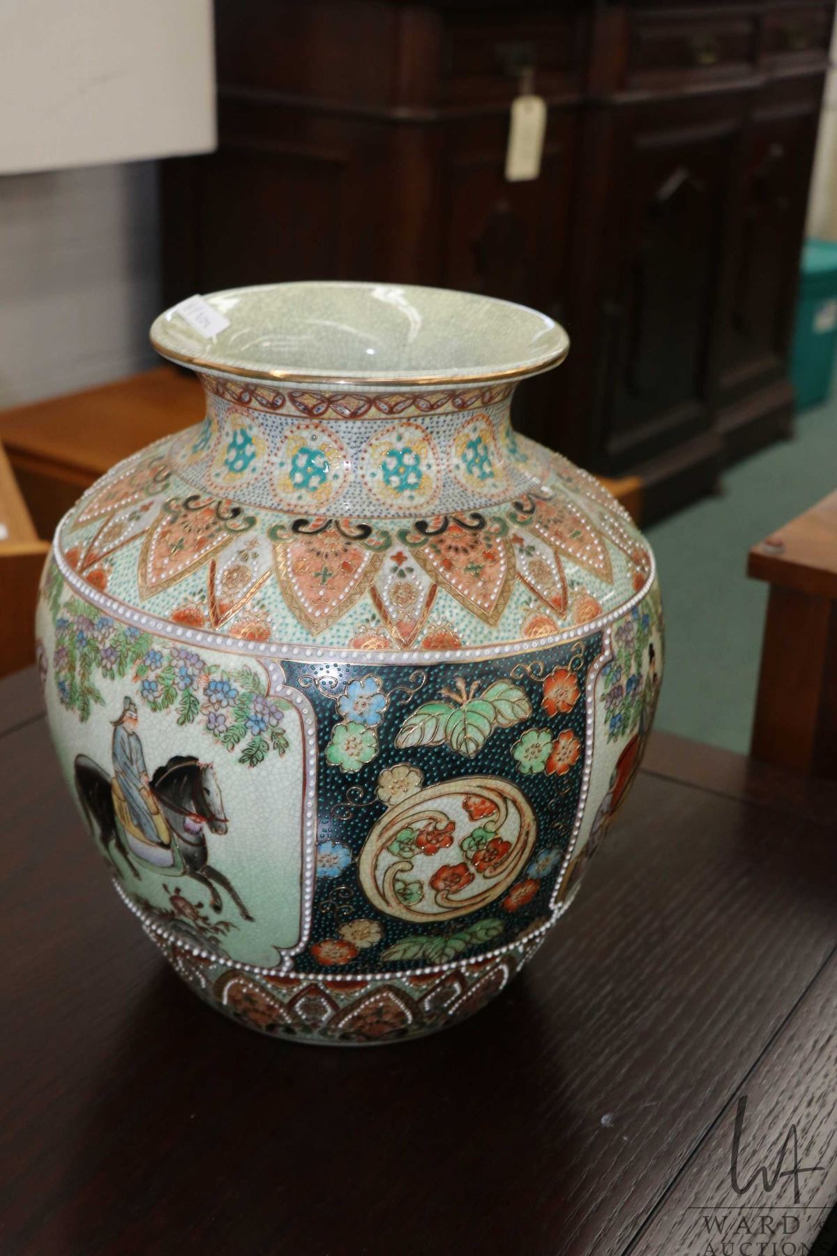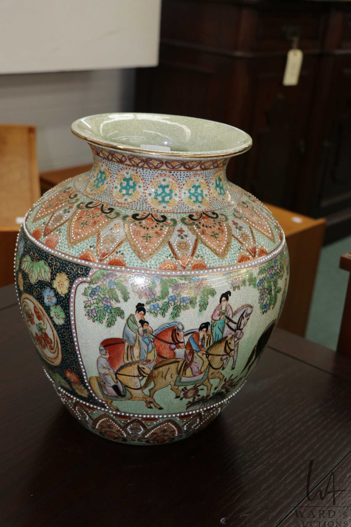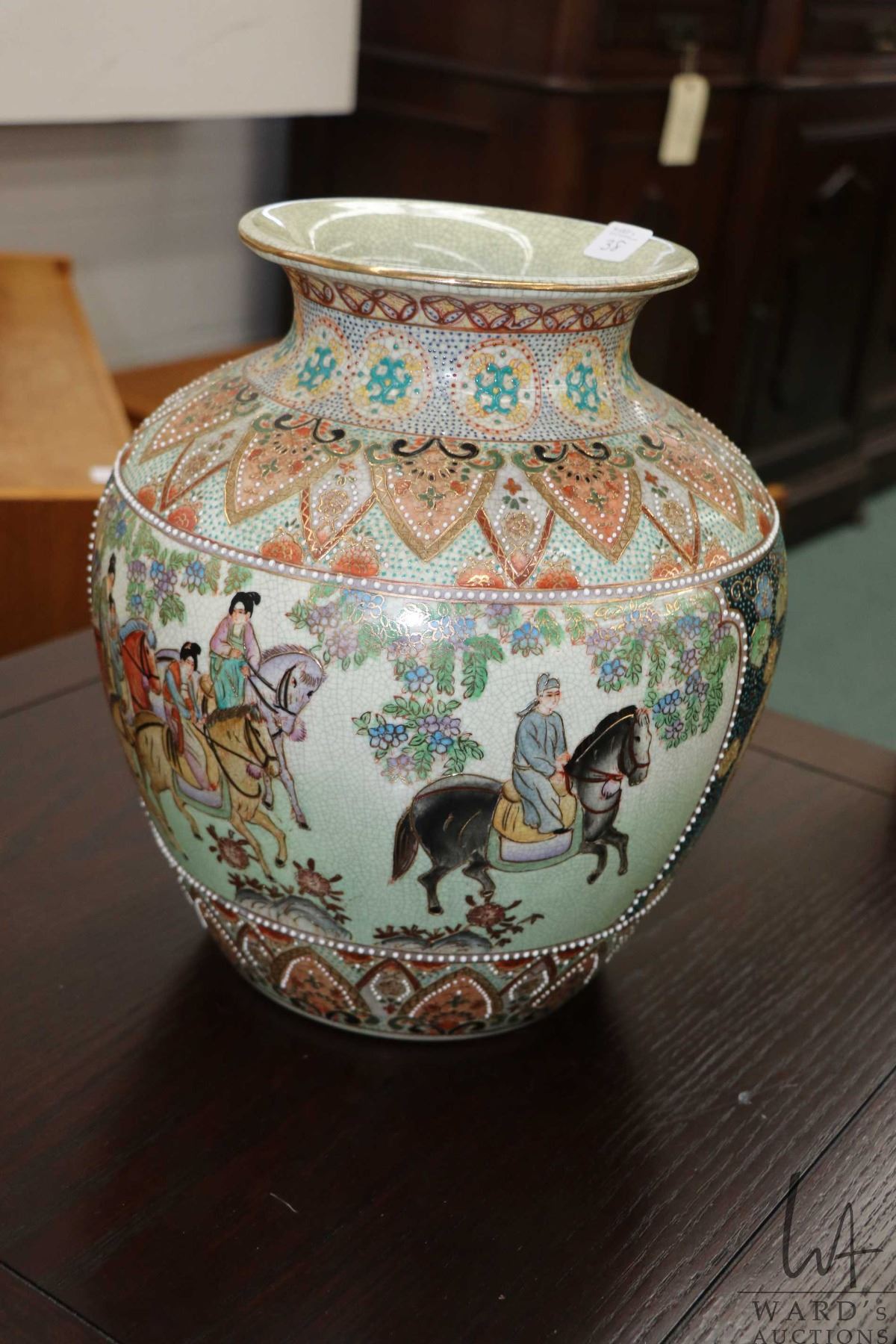 Modern, quality oriental style hand painted and hand enameled jardiniere. 13" high.