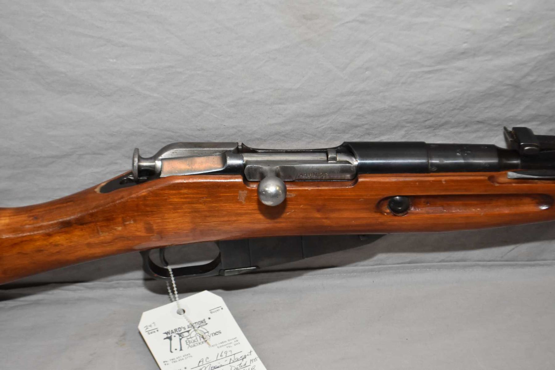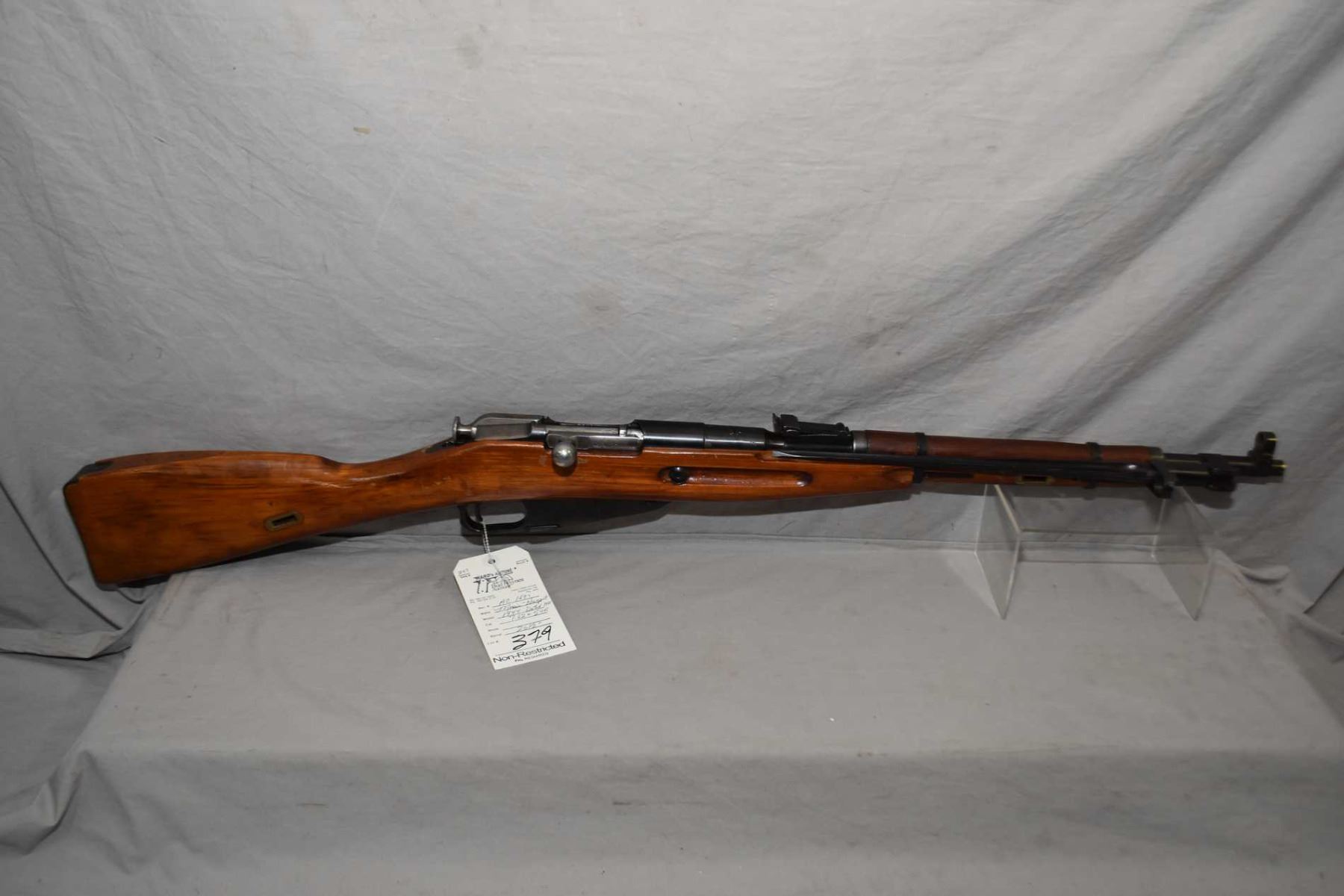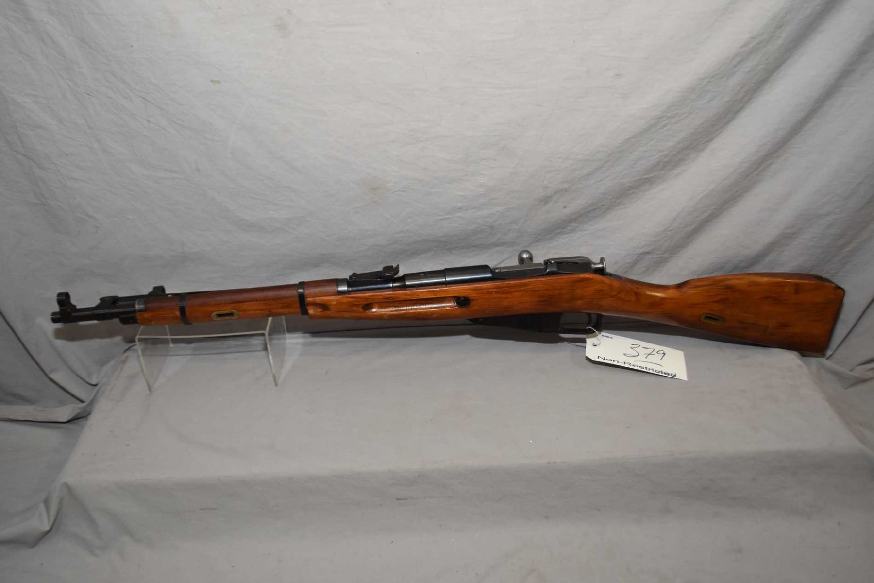 Mosin - Nagant Model 1944 Dated 1955 7.62 x 54 R Cal Full Wood Military Bolt Action Carbine w/ 20 1/2" bbl [ blued finish, barrel sights, attached folding bayonet, appears to have matching numbers, few marks to wood and metal, missing the cleaning rod ] Ser # AC1697