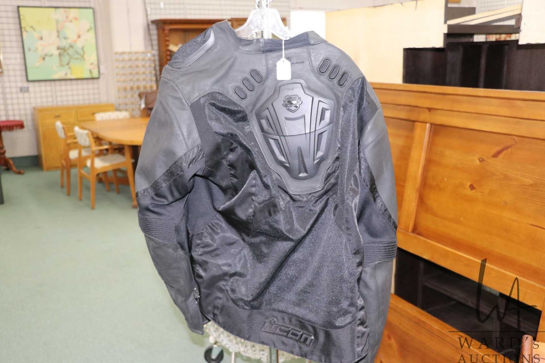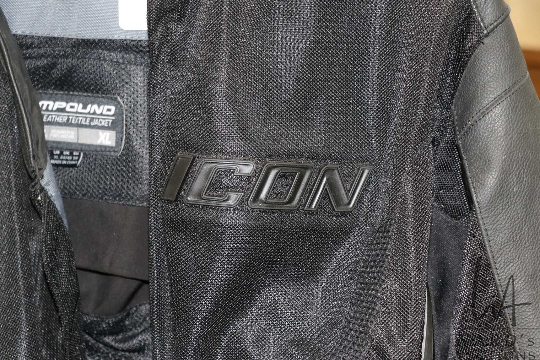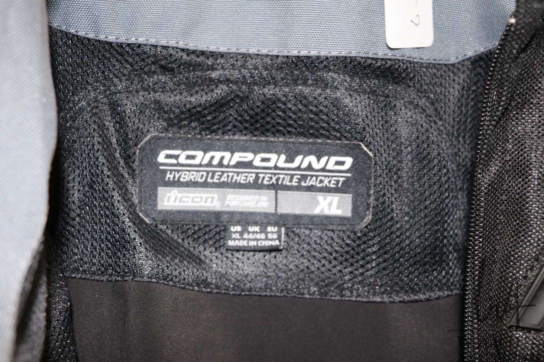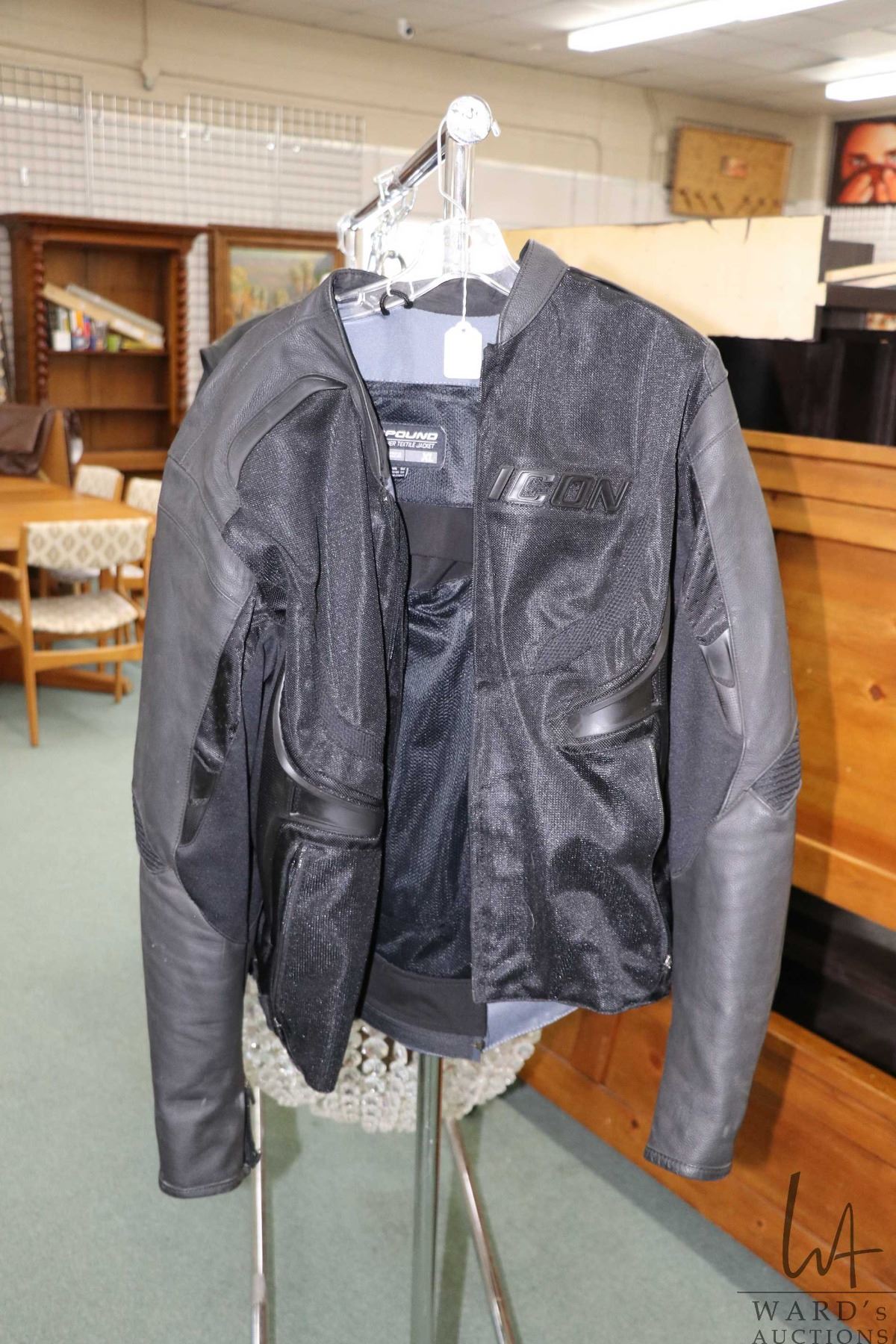 Motorcycle jacket size XL made by Icon Moto, compound hybrid leather textile.