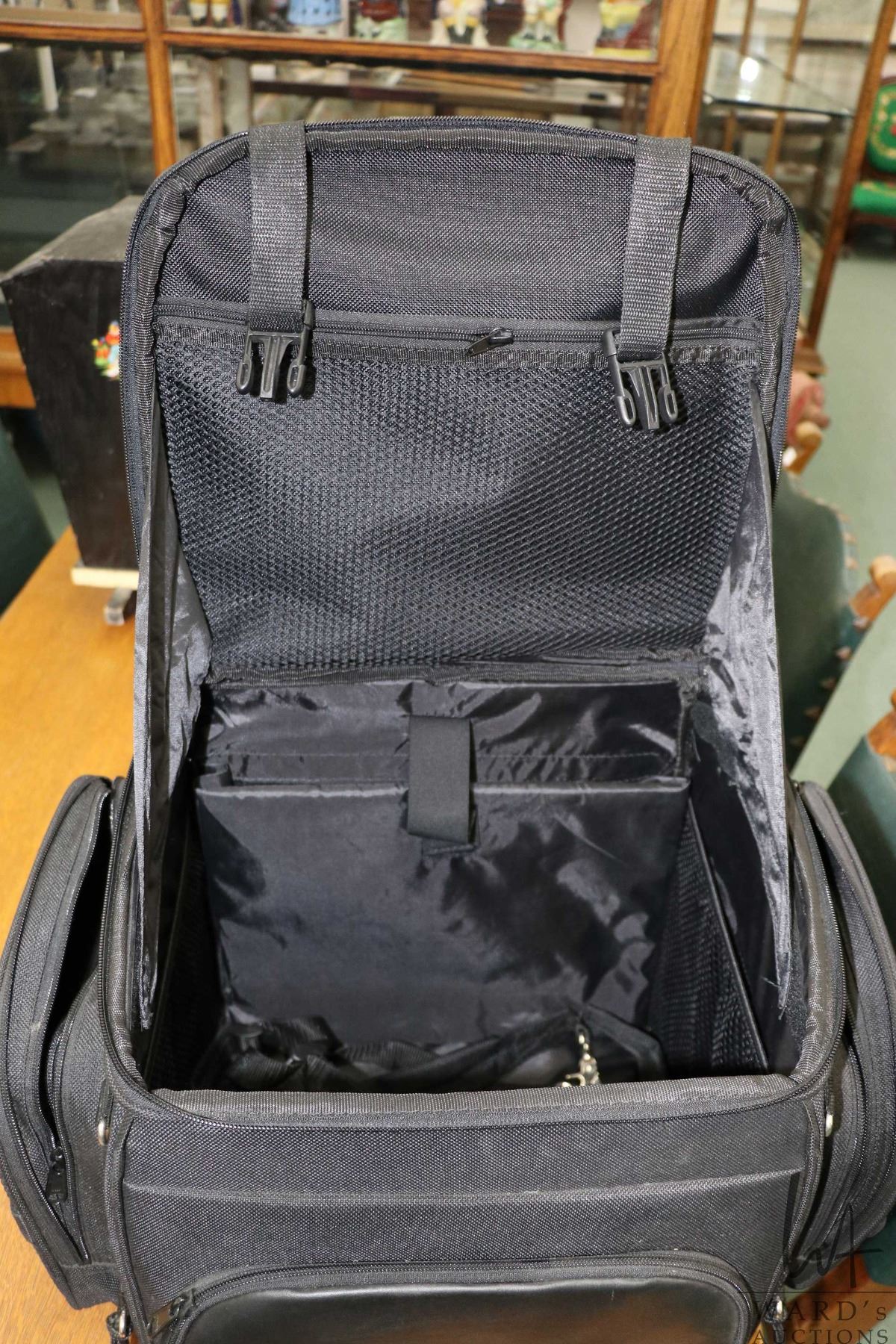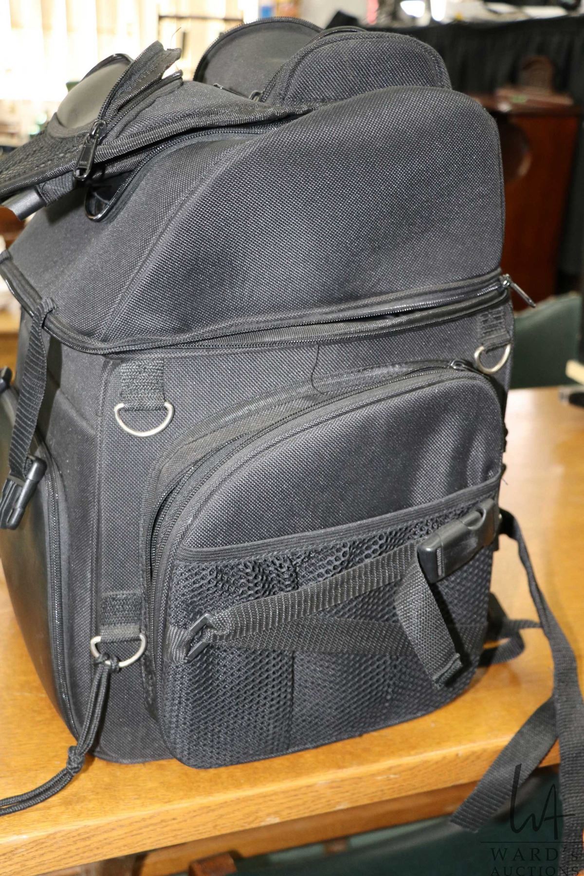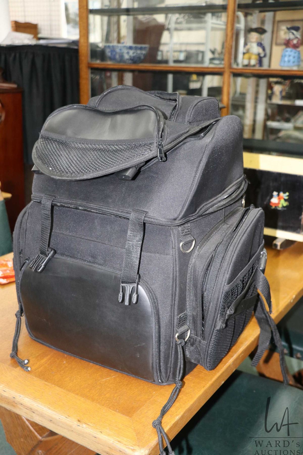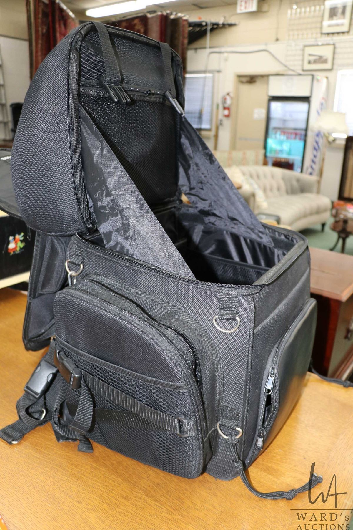 Motorcycle strap on carry back with rain cover made by SHAF.