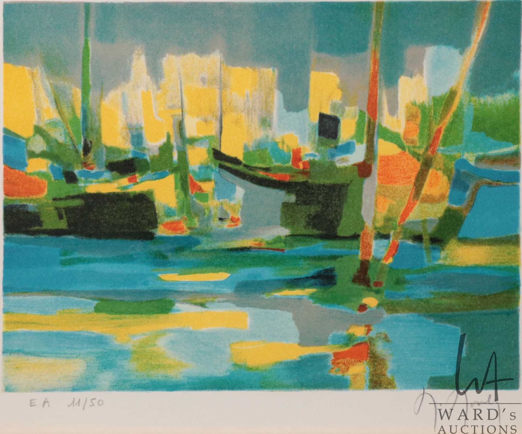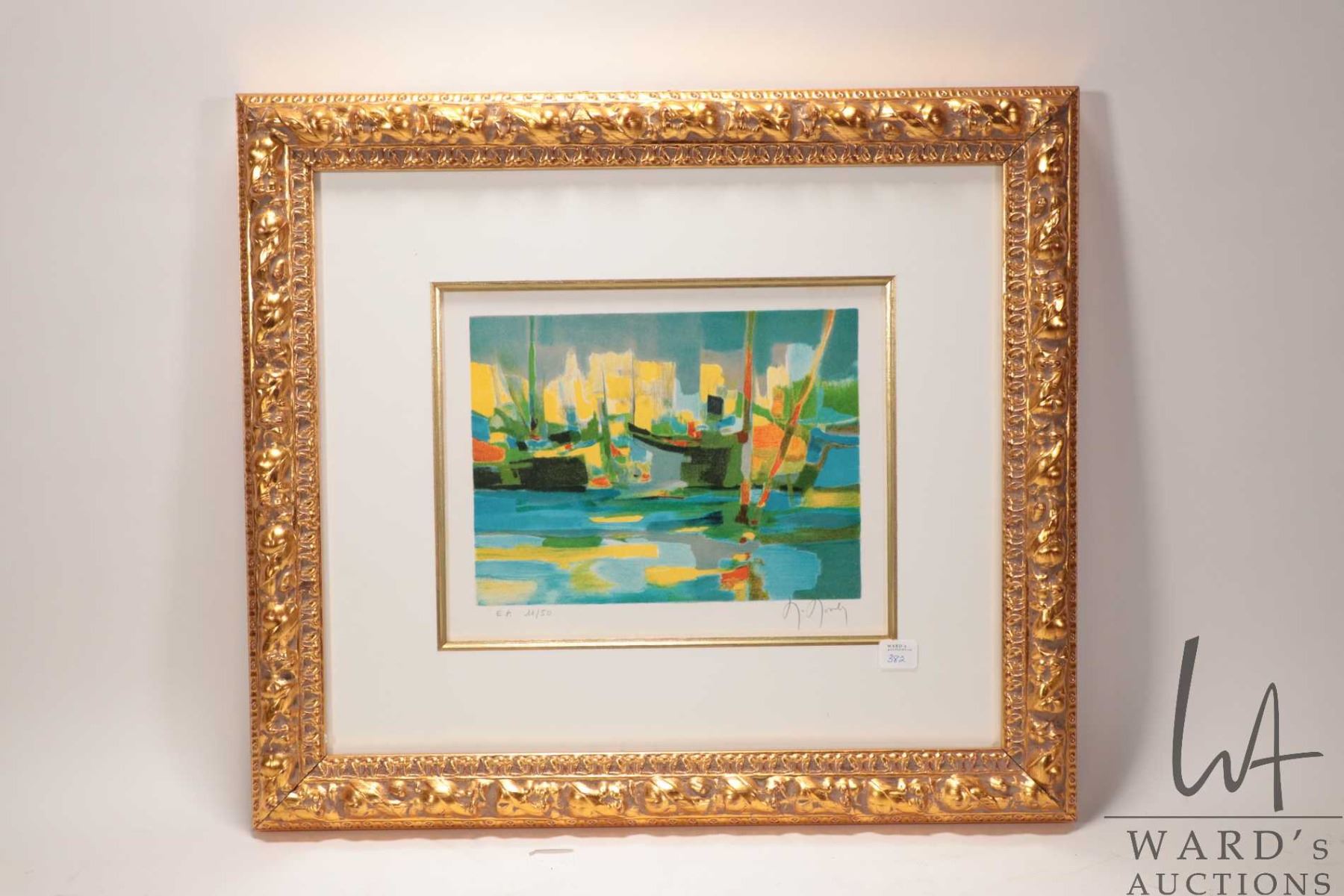 Mouly, Marcel, gilt framed lithograph print "Le Port Jaune, 1992" pencil signed by artist proof out