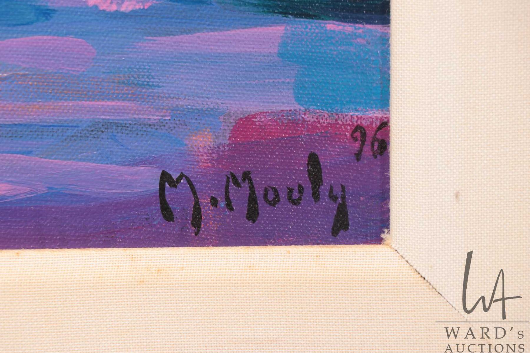 Mouly, Marcel, gilt framed original acrylic on canvas painting, titled on verso "Le Port Rose" signe