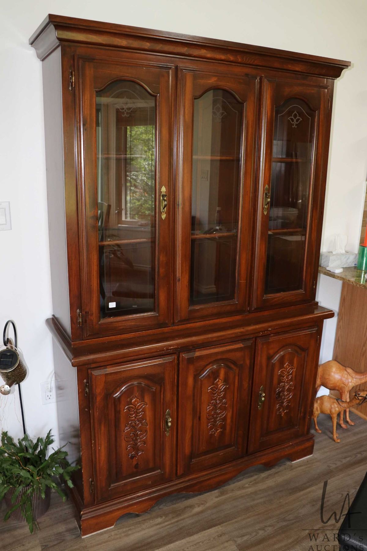 NAMAO LOCATION Chest of chest china cabinet 75" H X 48" X 17". Note: in two pieces for ease of moving -Note: this is a moving auction from a clean home - Note: No live preview, These items are located in Namao and location and contact information will be given to winning bidders only. Pick up times are July 21st through July 26st by appointment with homeowner. Anything left after 4pm on July 26 will be deemed abandoned