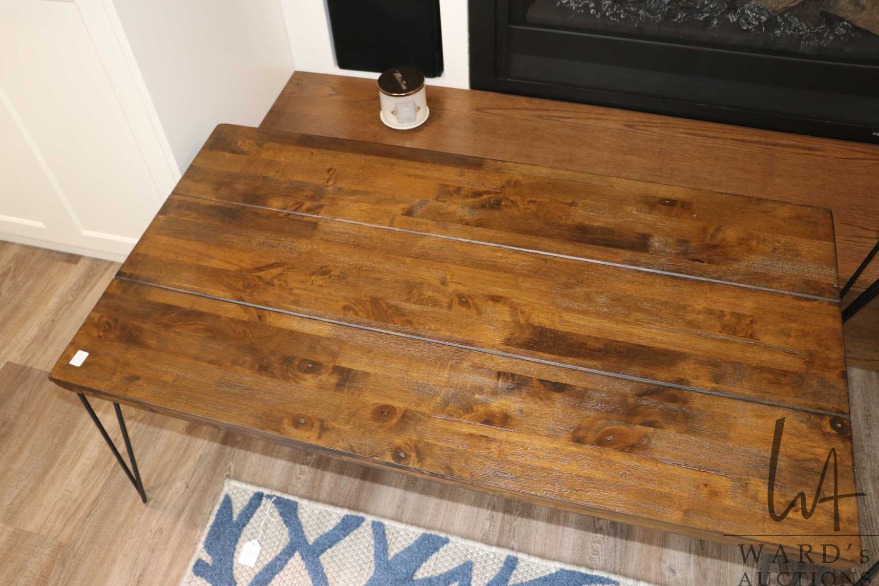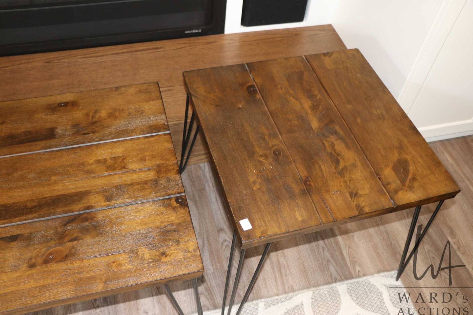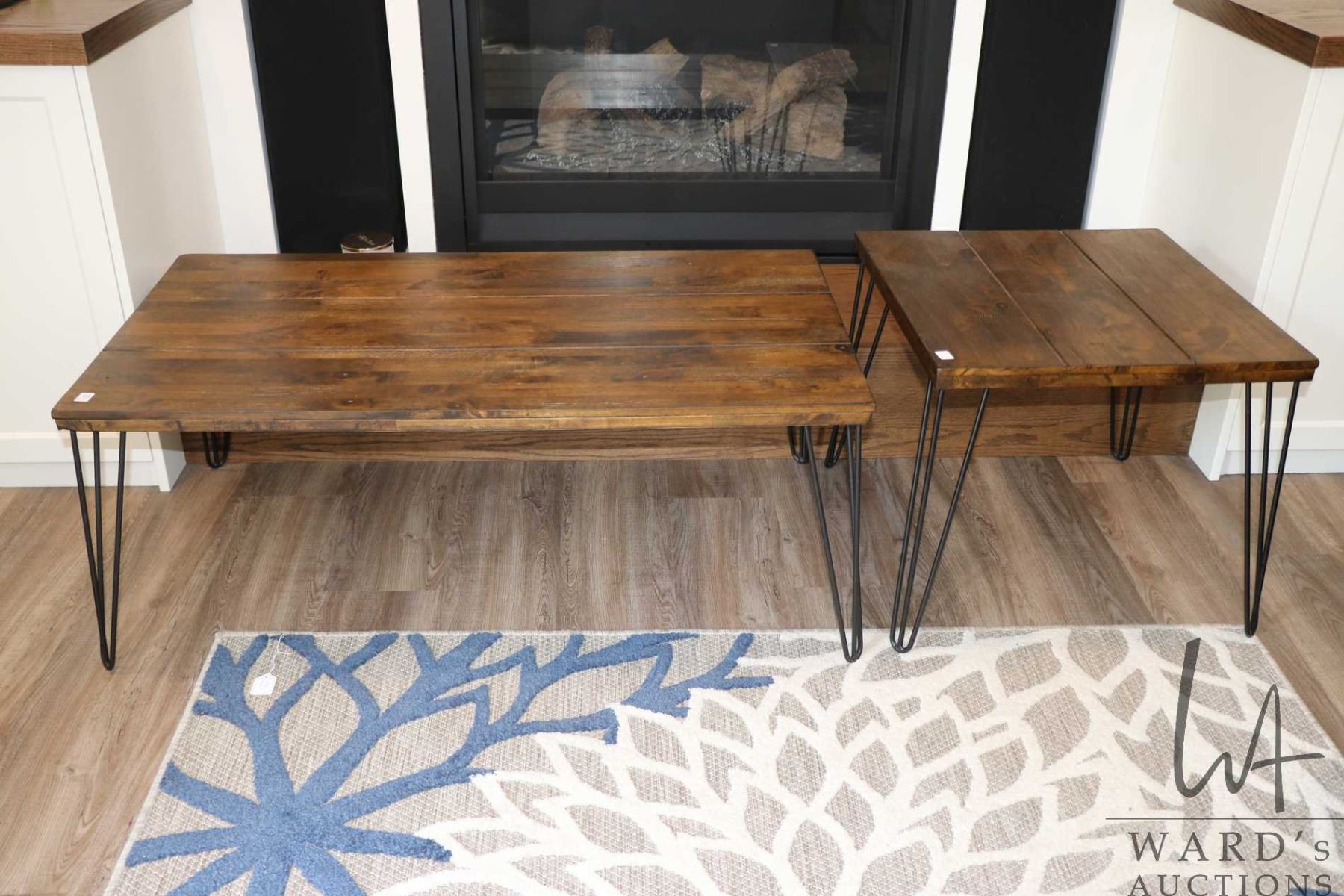 NAMAO LOCATION Country style coffee table 18" H X 43" W X 23" D plus matching side table 19" H x 22" X 22" -Note: this is a moving auction from a clean home - Note: No live preview, These items are located in Namao and location and contact information will be given to winning bidders only. Pick up times are July 21st through July 26st by appointment with homeowner. Anything left after 4pm on July 26 will be deemed abandoned