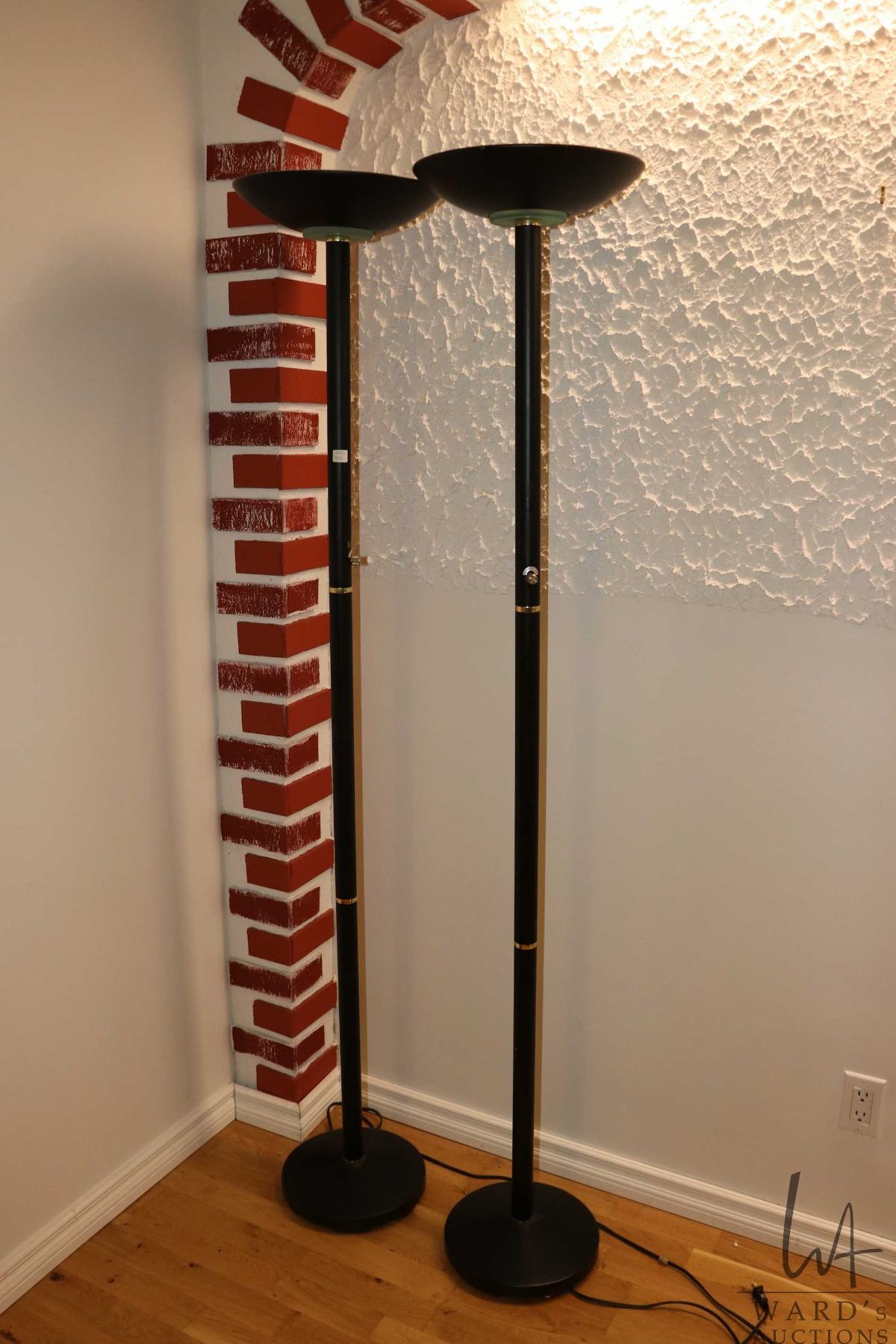 NAMAO LOCATION Pair of black finish halogen floor lamps -Note: this is a moving auction from a clean home - Note: No live preview, These items are located in Namao and location and contact information will be given to winning bidders only. Pick up times are July 21st through July 26st by appointment with homeowner. Anything left after 4pm on July 26 will be deemed abandoned