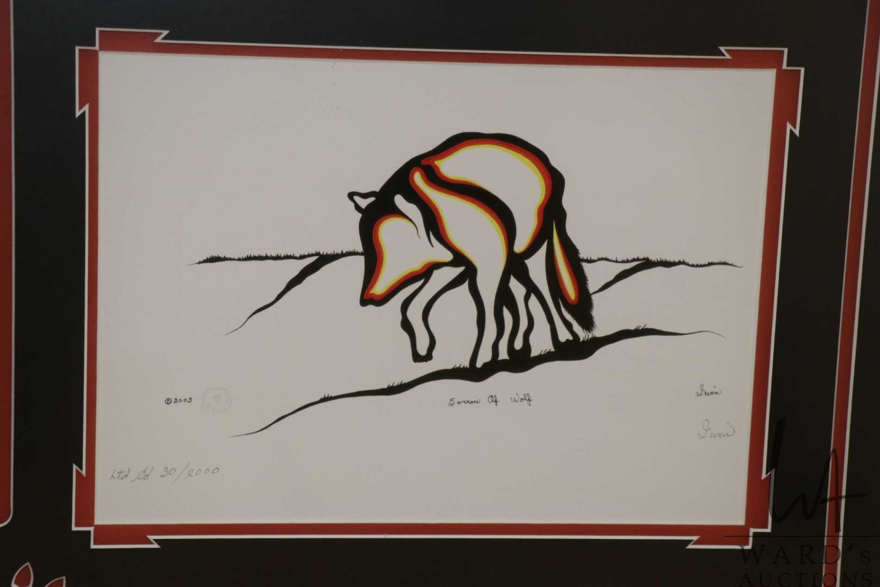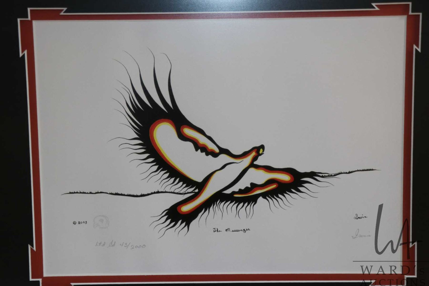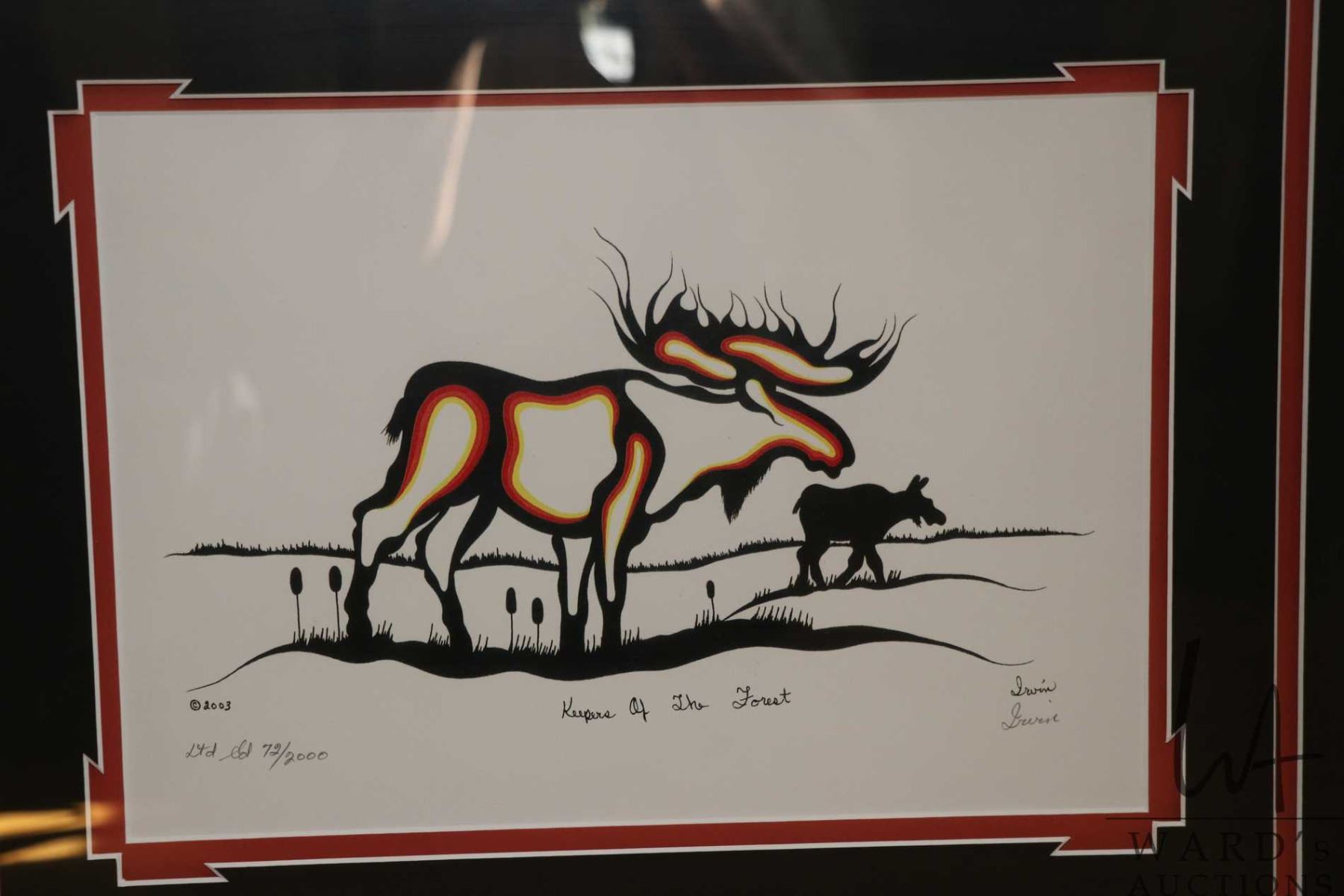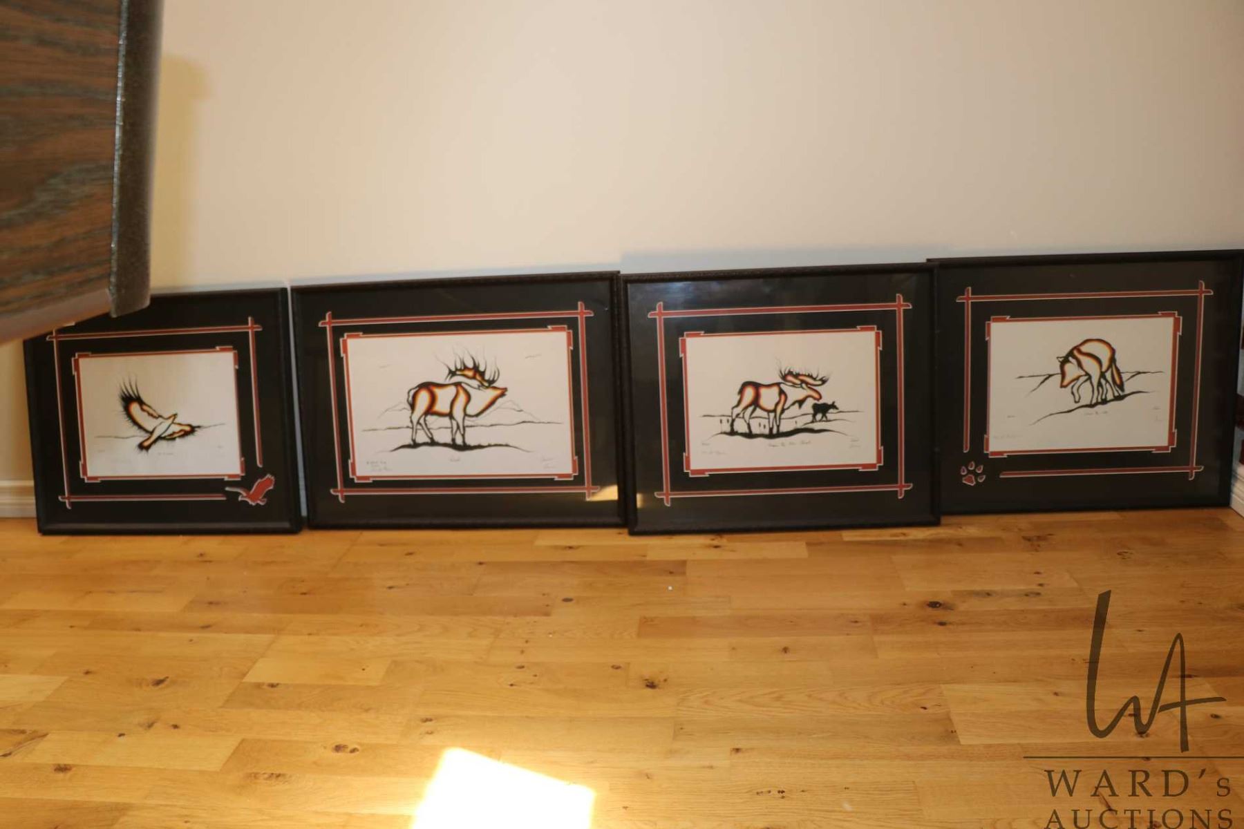 NAMAO LOCATION Set of four framed limited edition prints including "Keepers of the Forest" etc. signed by artist Irwin and each are 18" X 22" -Note: this is a moving auction from a clean home - Note: No live preview, These items are located in Namao and location and contact information will be given to winning bidders only. Pick up times are July 21st through July 26st by appointment with homeowner. Anything left after 4pm on July 26 will be deemed abandoned