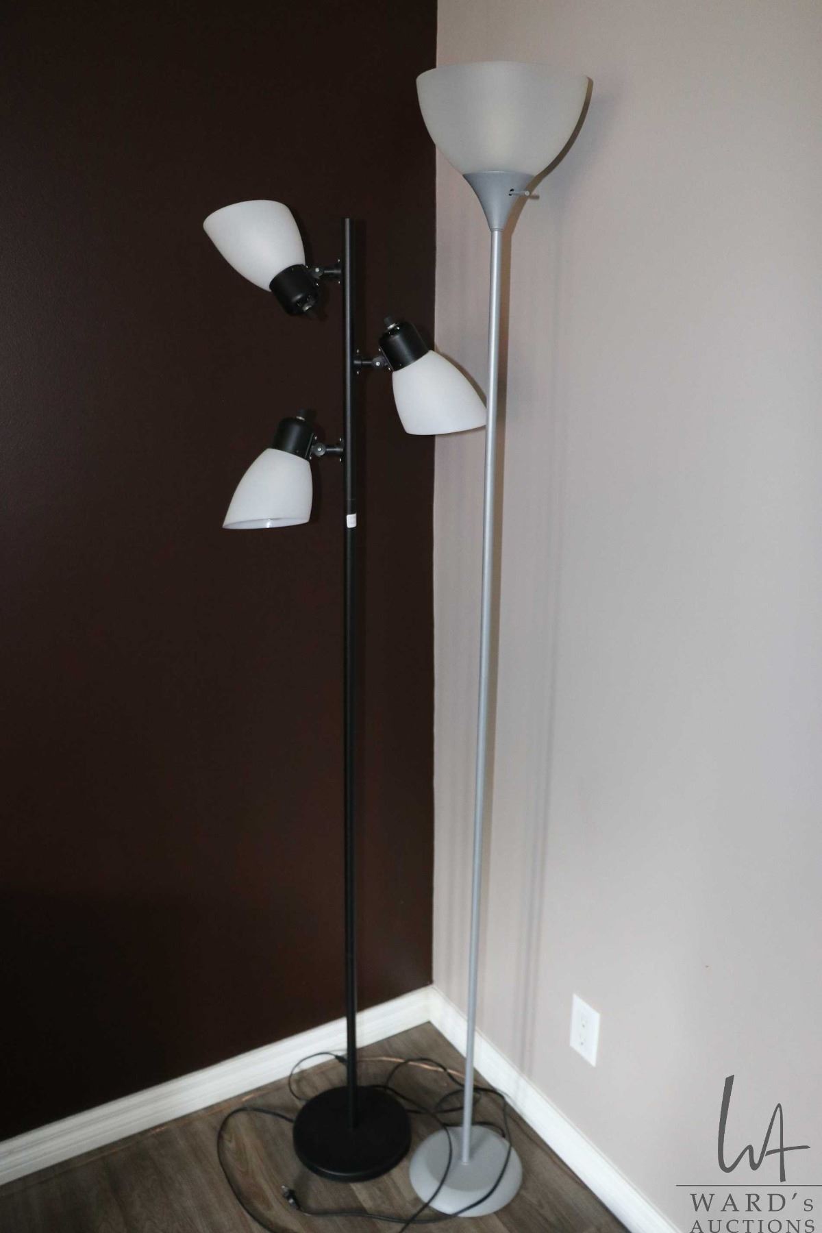 NAMAO LOCATION Two floor lamps, one black and one silver -Note: this is a moving auction from a c