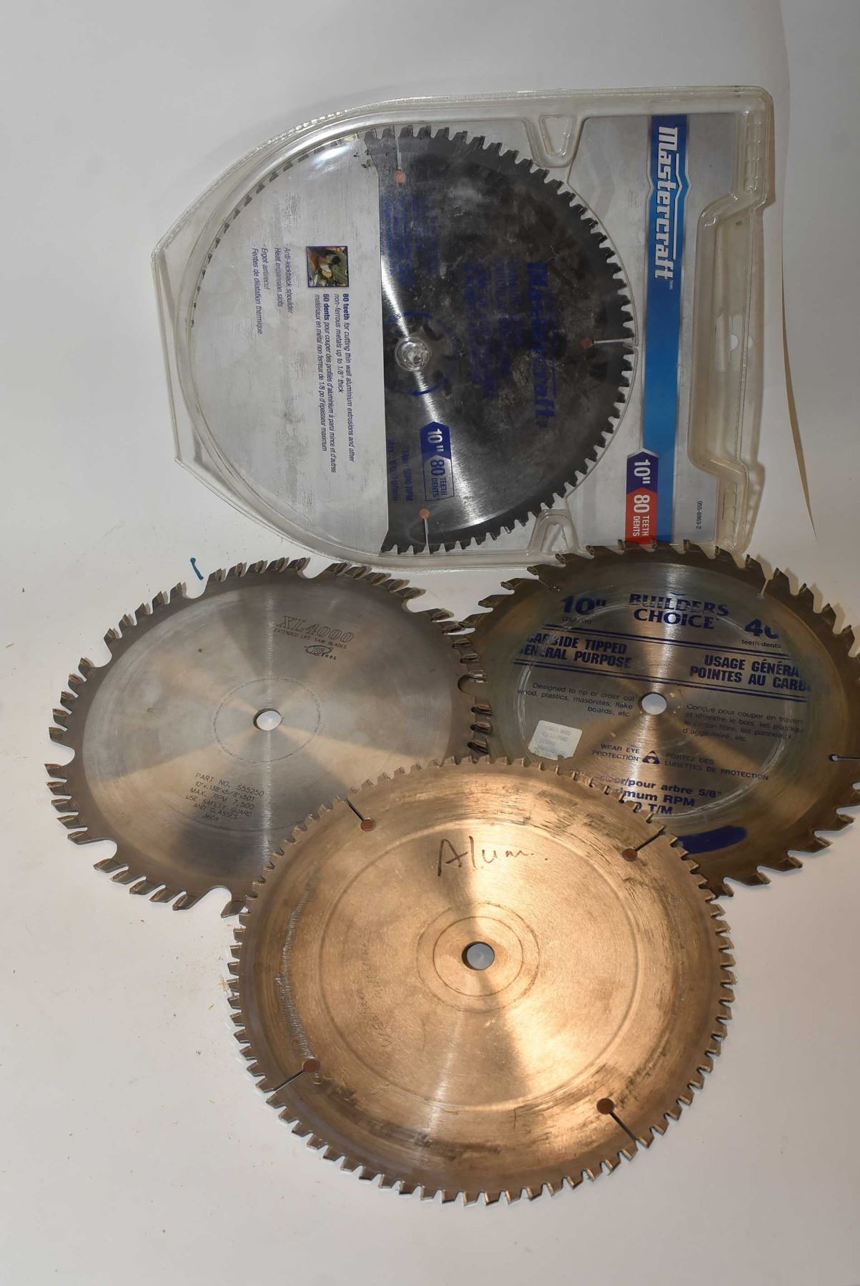 New Mastercraft 80 tooth 10" saw blade and three used 10" circular saw blades