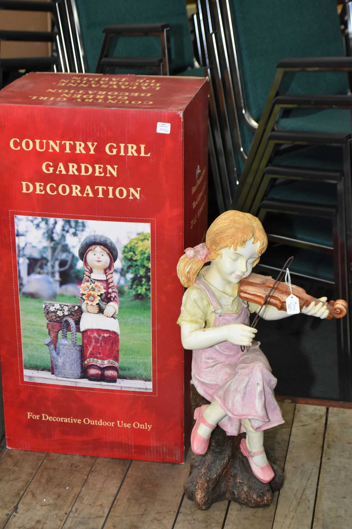 New in box "Country Girl" garden decorative planter, and young girl playing the violin 24" in height